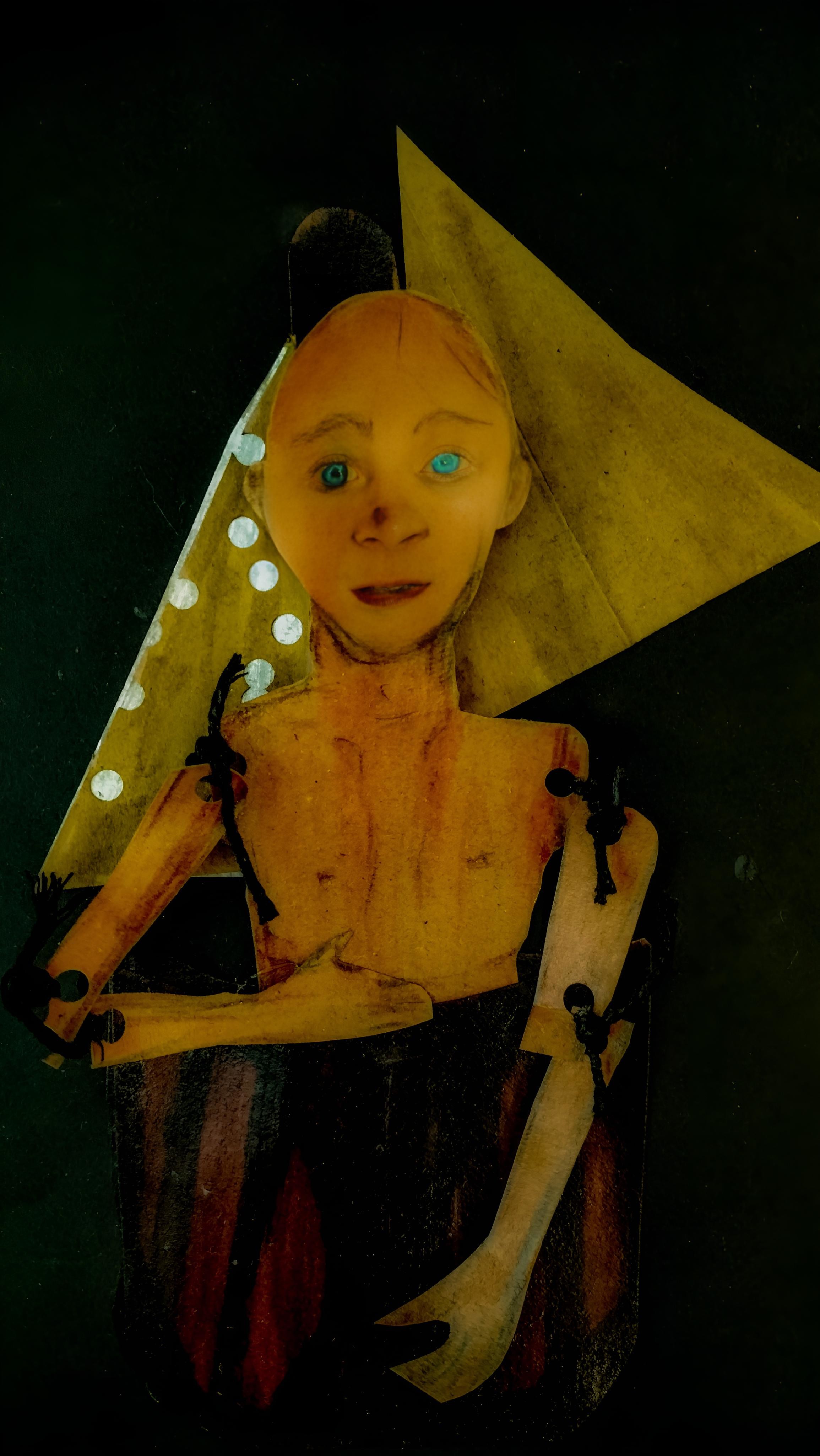 Kartonnen mannetje. Gemaakt van karton beschilderd en gefotografeerd.