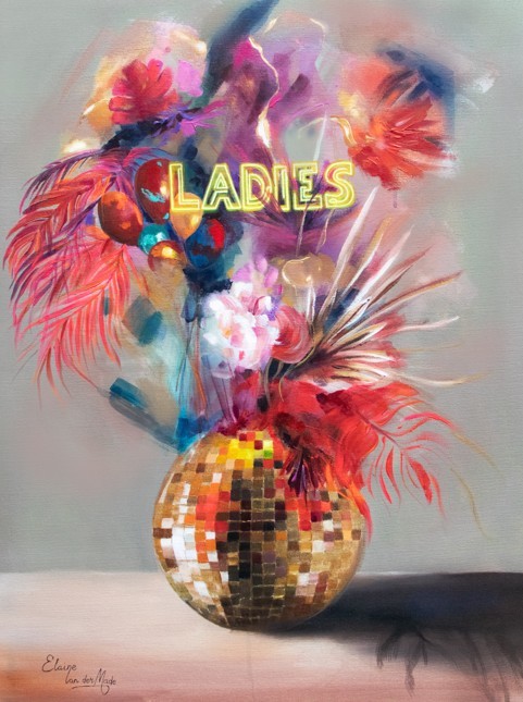 Het vrouwelijke feestje dat ontstaat wanneer vrouwen samenkomen, wanneer lachen vanzelf gaat en woorden soms niet eens nodig zijn. Het vangt dat gevoel van sisterhood, van diepe vriendschappen waarin je jezelf mag zijn en je gedragen voelt door elkaar. 'And Gentleman gaat over verbondenheid. Over avonden vol gesprekken, gedeelde herinneringen en dat ene berichtje aan het einde van de nacht, “app je als je thuis bent?”, een klein zinnetje vol zorg, liefde en onzichtbare draden tussen harten. Maar dit schilderij is ook een ode aan balans. Aan het vieren van vrouwen zonder mannen uit te sluiten. Want vrouwelijkheid kan niet volledig stralen zonder de liefde, zachtheid en kracht van mannen. Hun aanwezigheid, hun steun, hun manier van liefhebben maakt het leven rijker en het samenzijn completer.