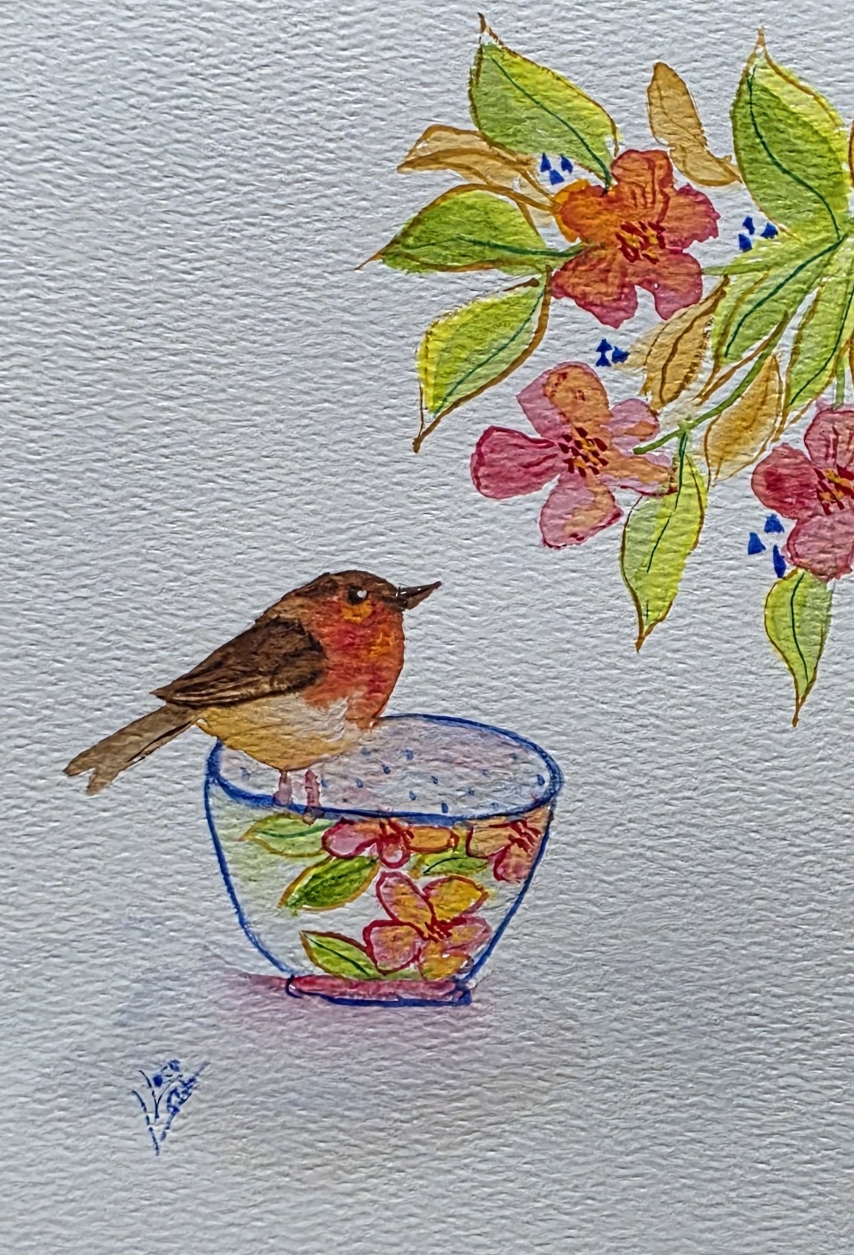 aquarel robin teacup
