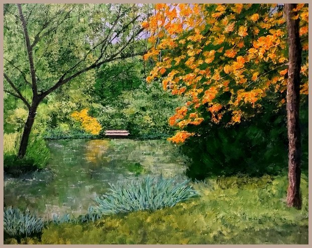 In oktober 2025 gemaakte impressie in het bijna 60 hectare tellende, bij Breukelen gelegen park, naast een van de stille vijvers en een boom in herfsttinten.