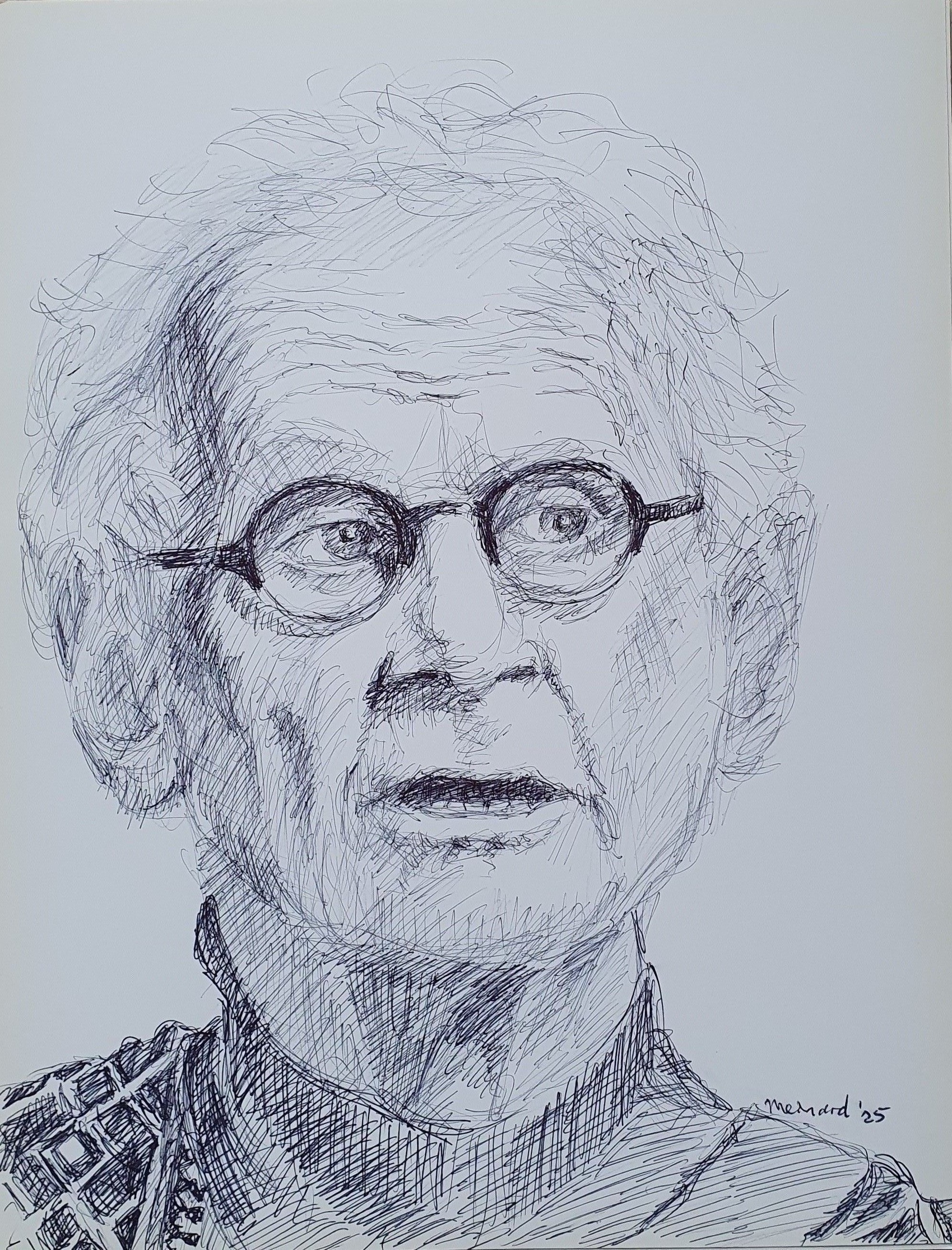 Penportret van een van mijn zangvrienden bij het wereldkoor Cascantar. Karakterhoofd in aandacht bij de zang.