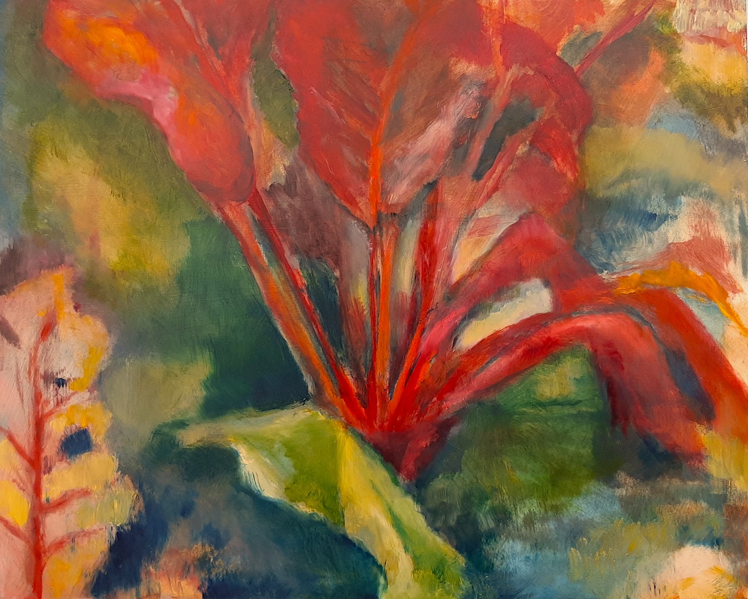 Uitvergroting van de bietensalade in mijn moestuin. Olieverf op mdf.
