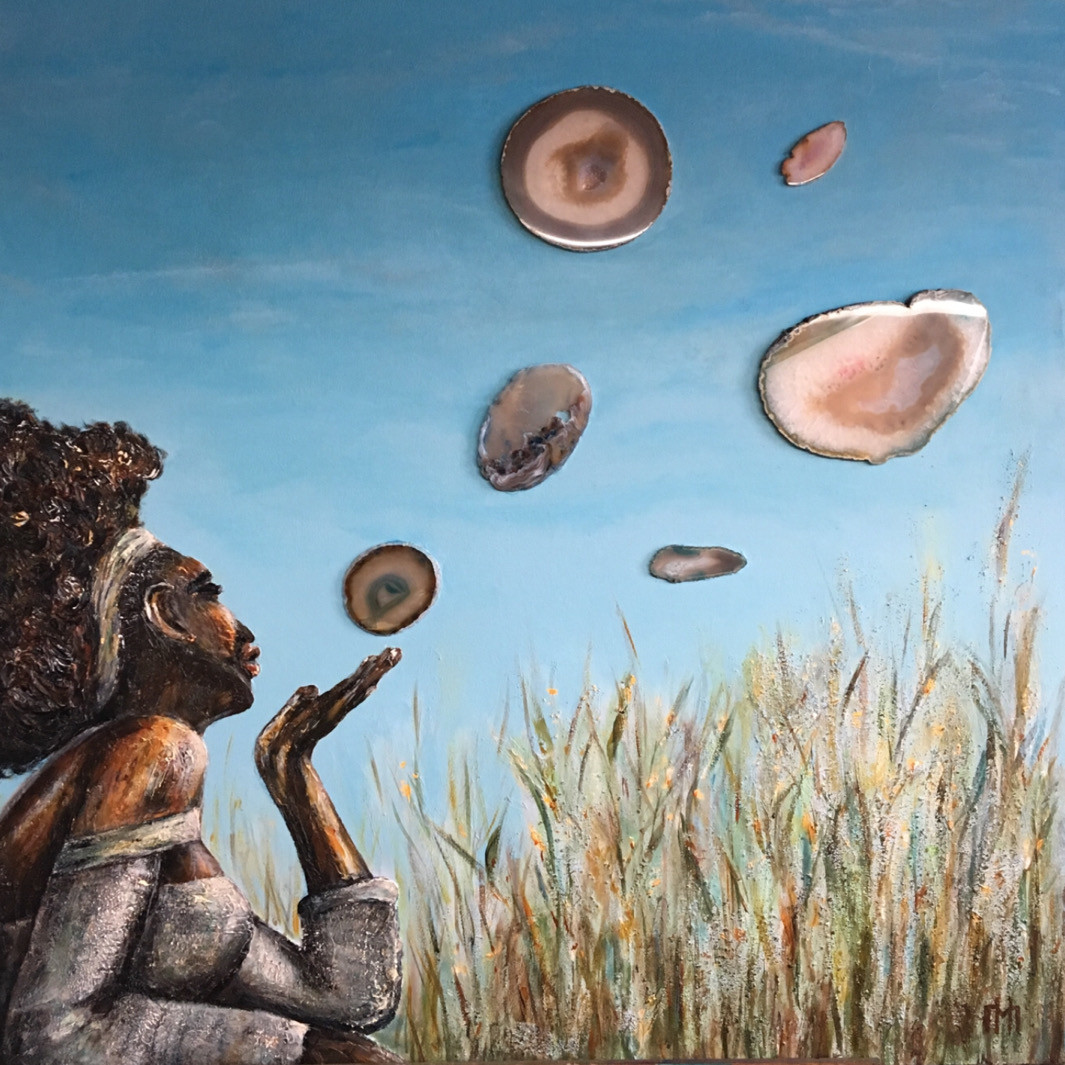 Schilderij met agaten op hout