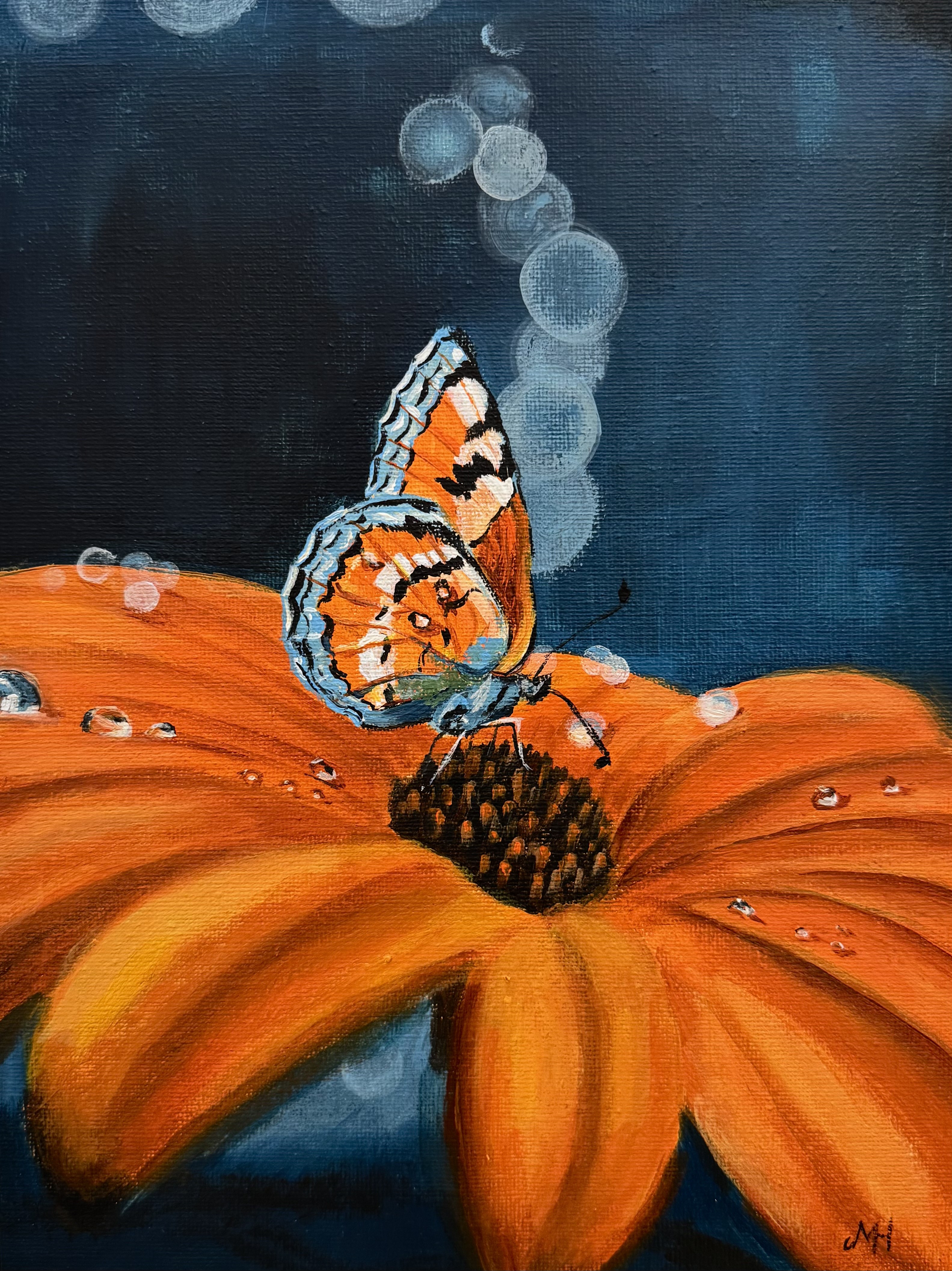 Een close-up van een vlinder op een bloem, met focus op kleur, licht en detail.
