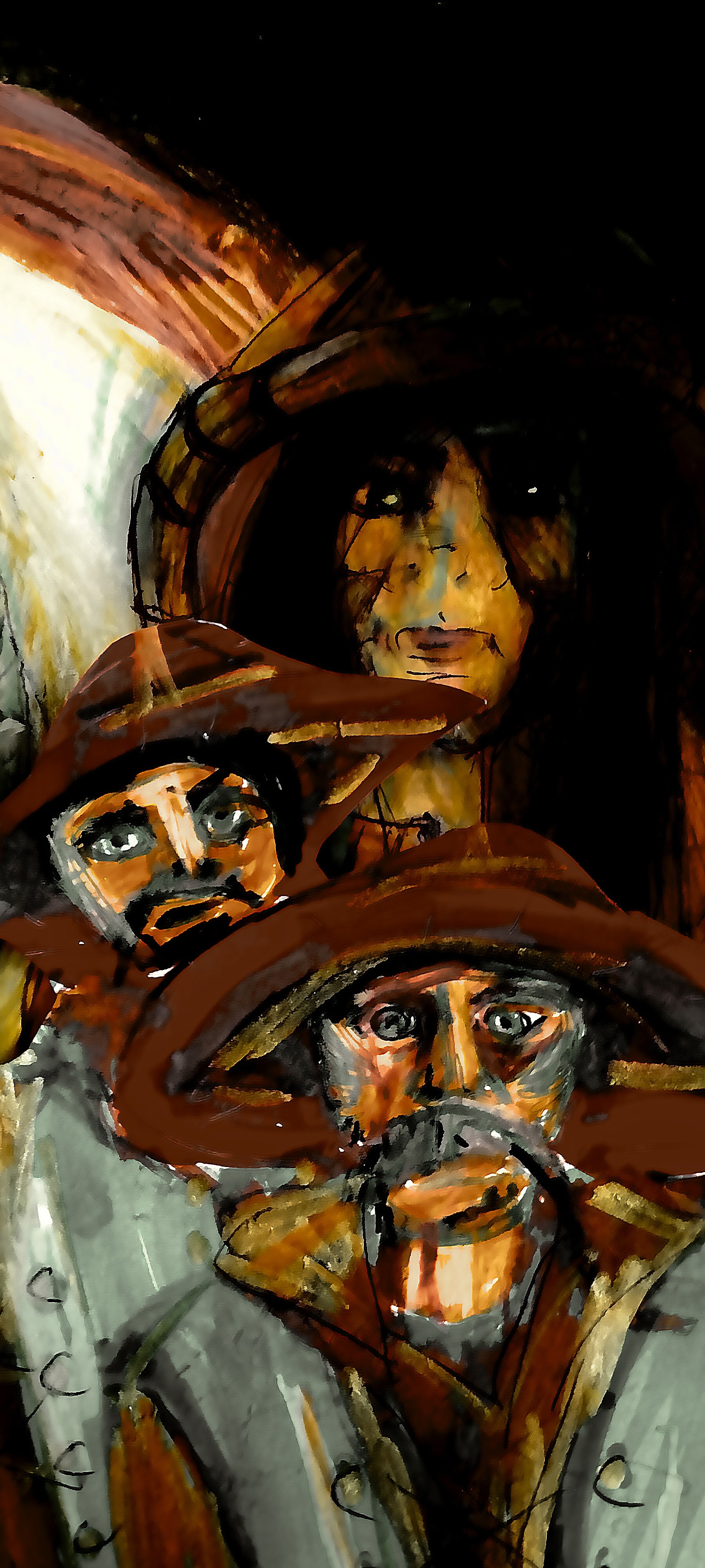 Gemaakt van karton en papier gefotografeerd geknipt geplakt. Waterverf en stift
