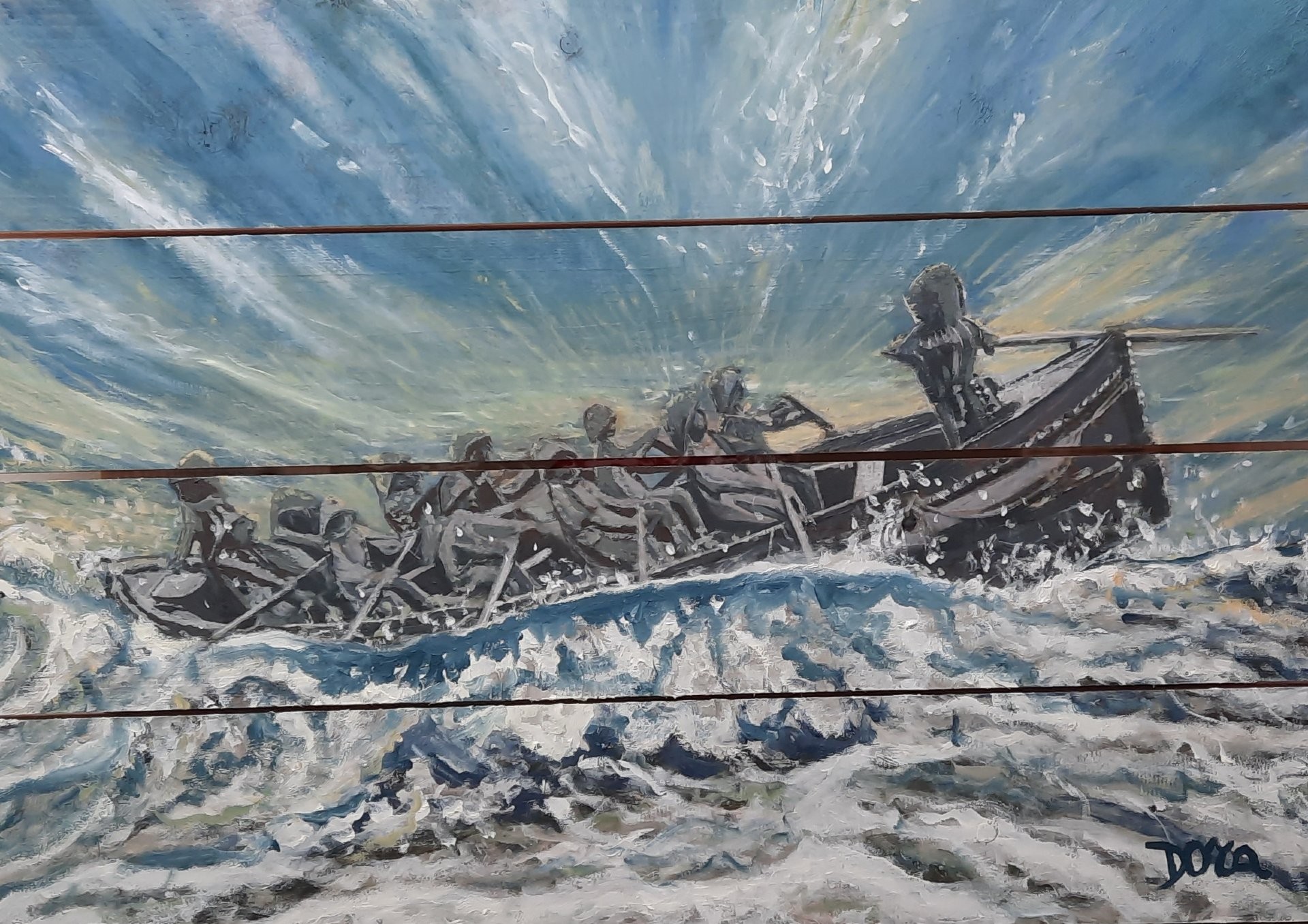 Geschilderd naar een beeld van Louk Meurs. Olieverf op vuurhouten planken.