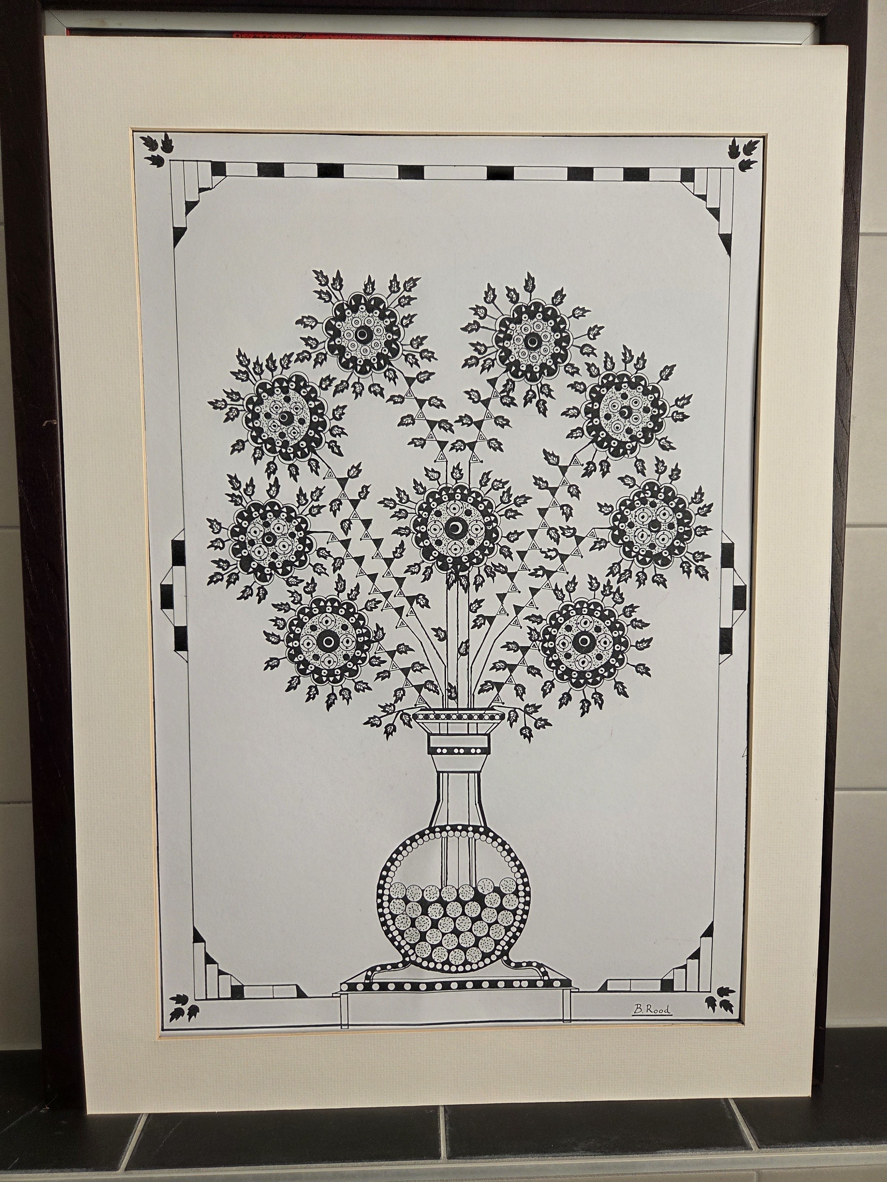 Ontstaan door ,dat ik een vaas met bloemen zag , die mij inspireerde,om een tekening te maken.