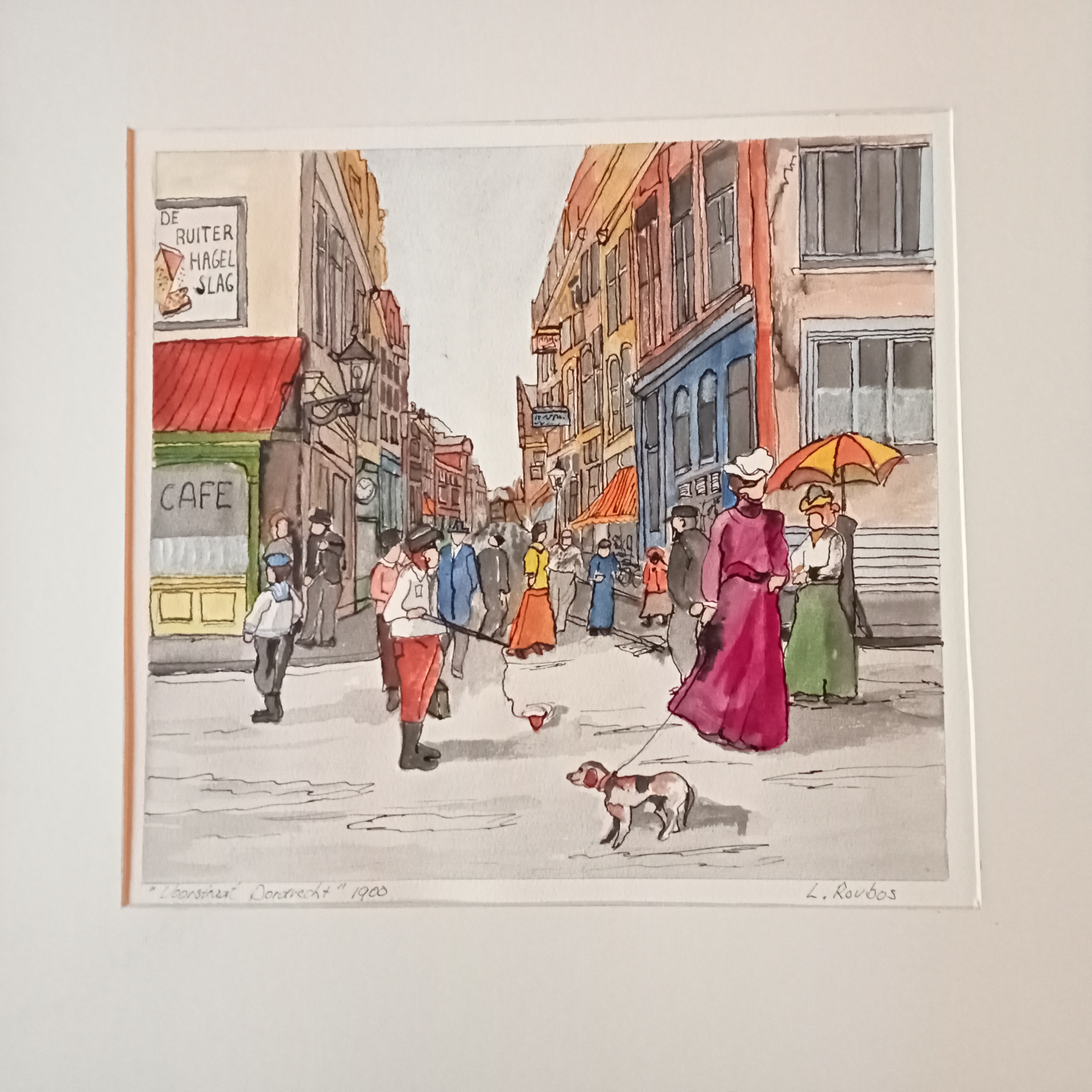 Vriesestraat in oude tijden. Aquarel met pentekening.