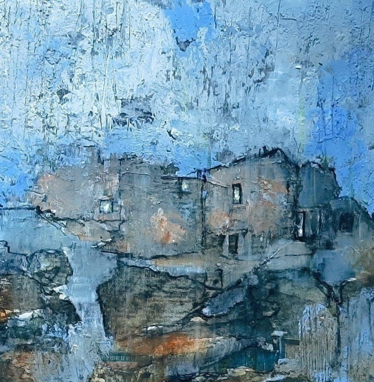 Een troosteloze regendag, maar achter de ramen brandt licht.