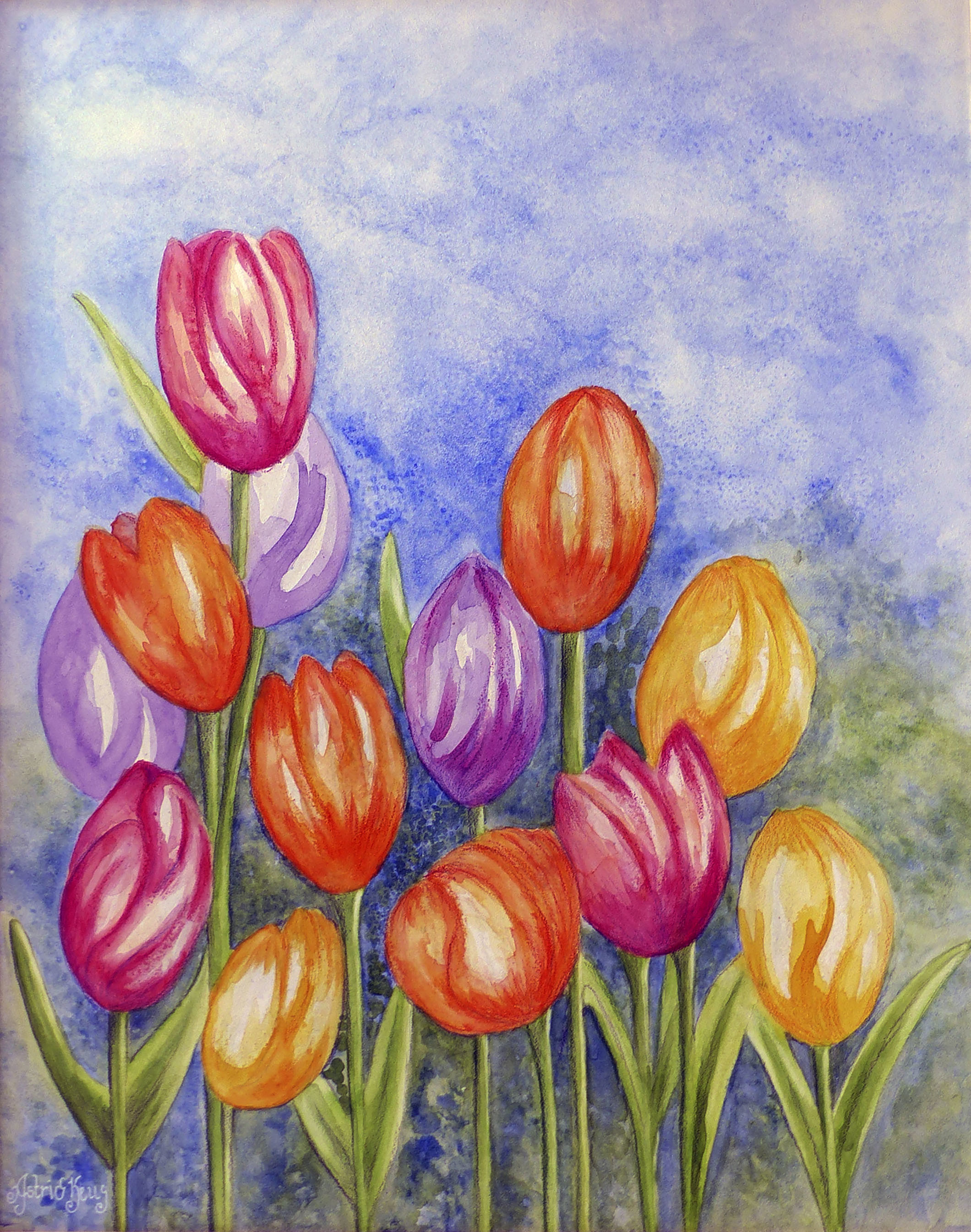 Een drieluik in opdracht geschilderd. Medium: Aquarel op aquaboard.