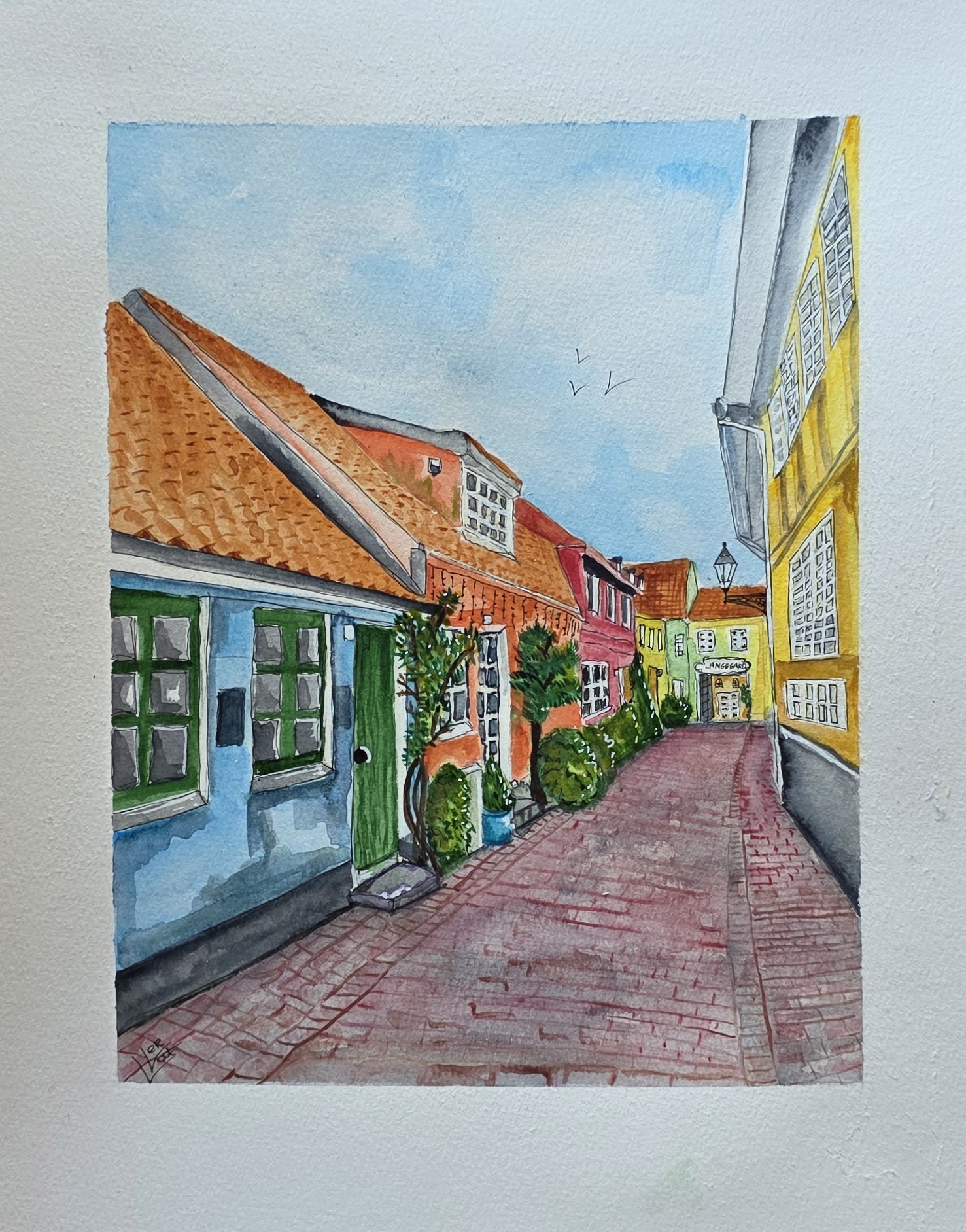 In Denemarken hebben de oude plaatsen veel gekleurde huizen.