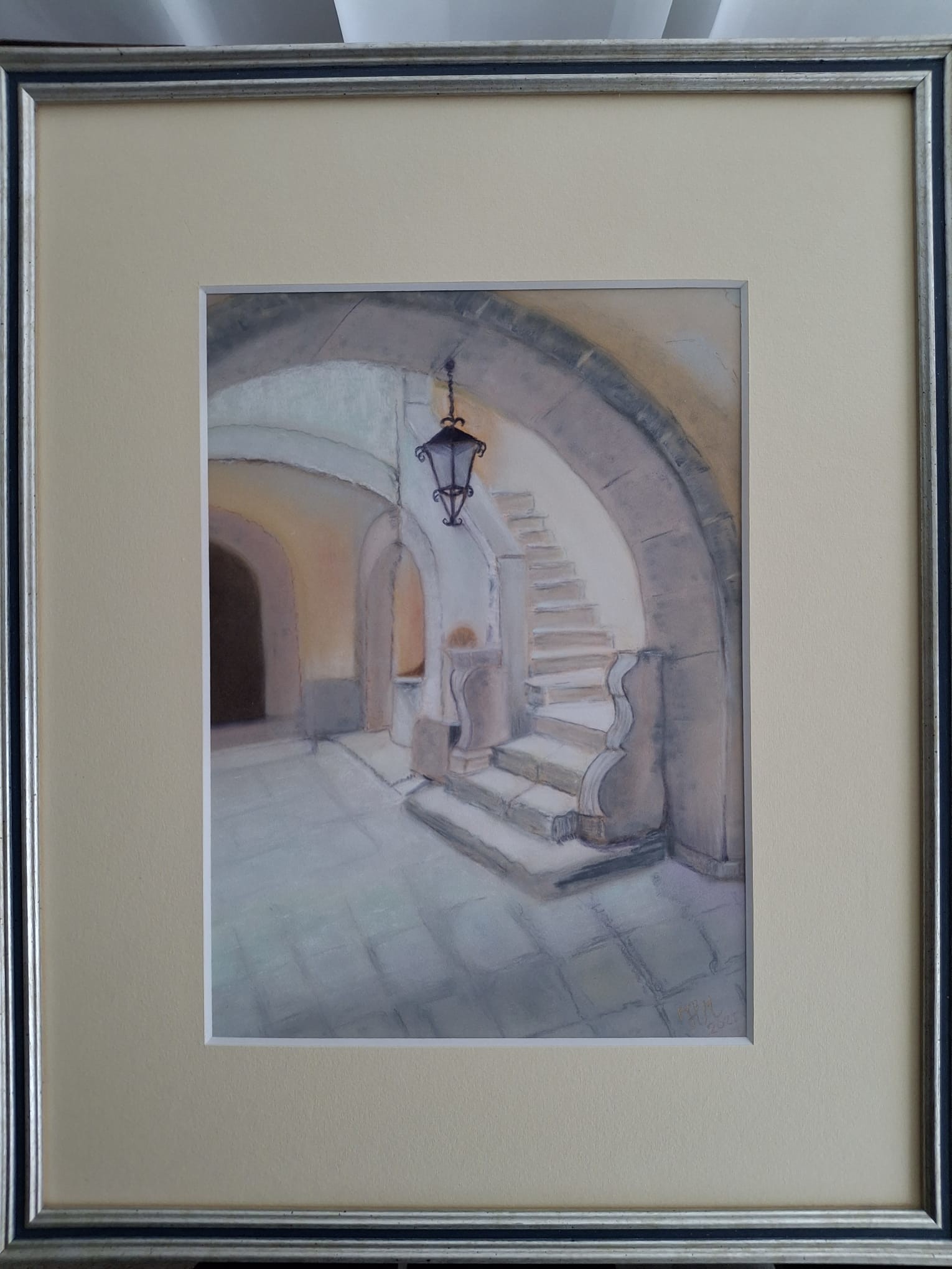 pasteltekening gedeelte van een oud paleis.