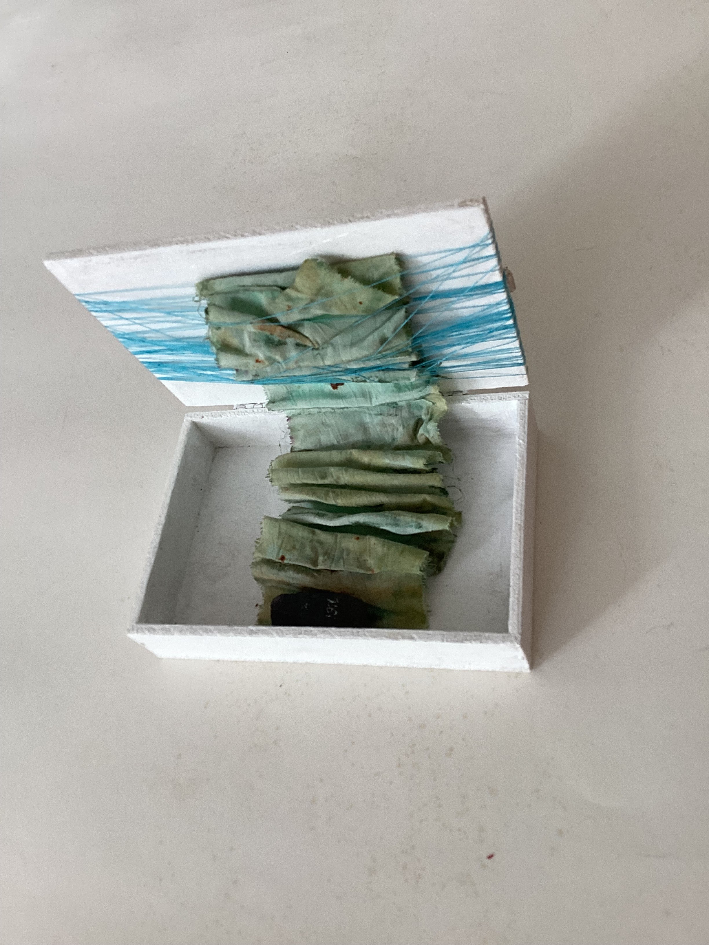 Hout stof, schelp en draad