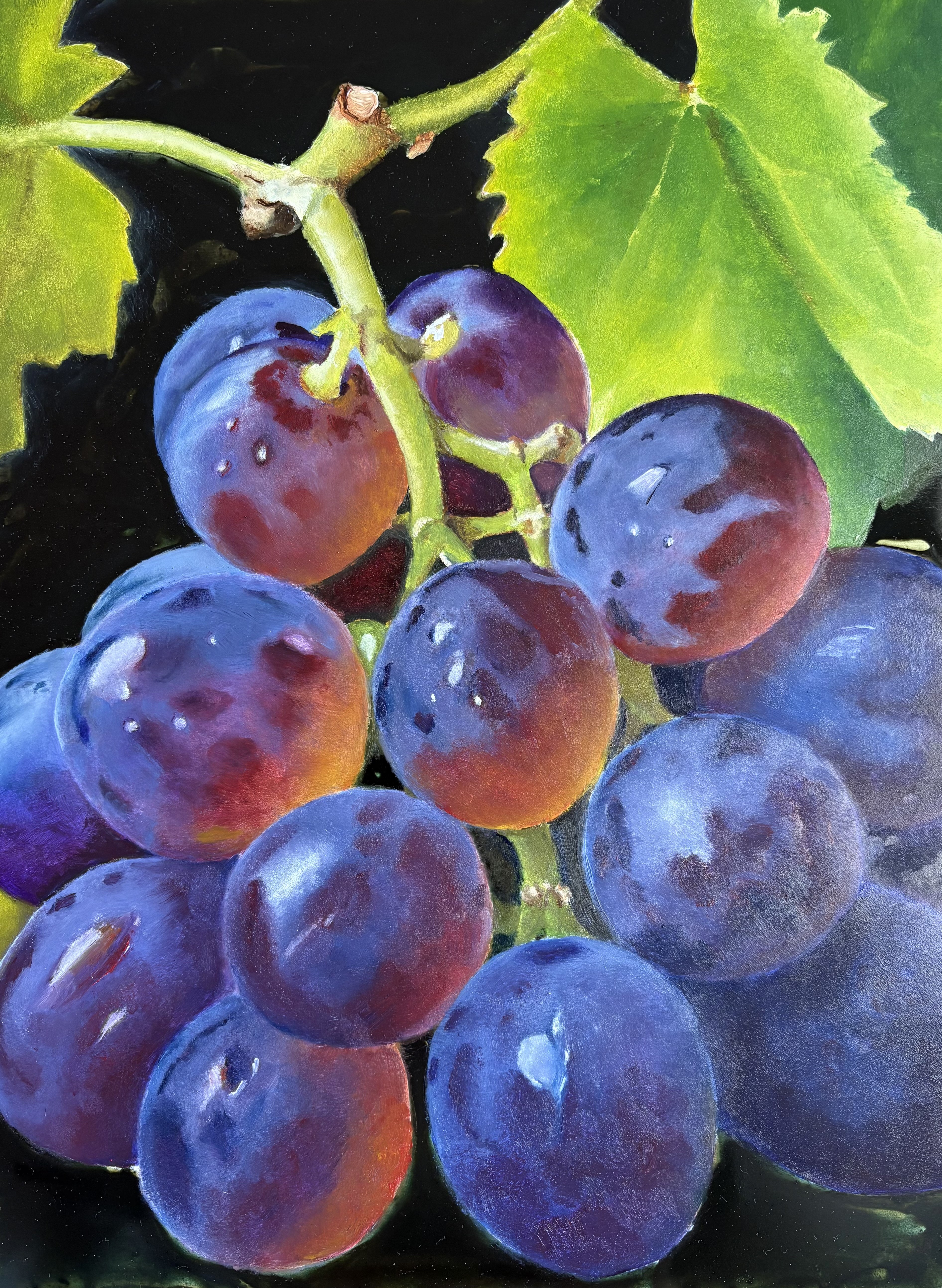 Blauwe druiven, mixed media.