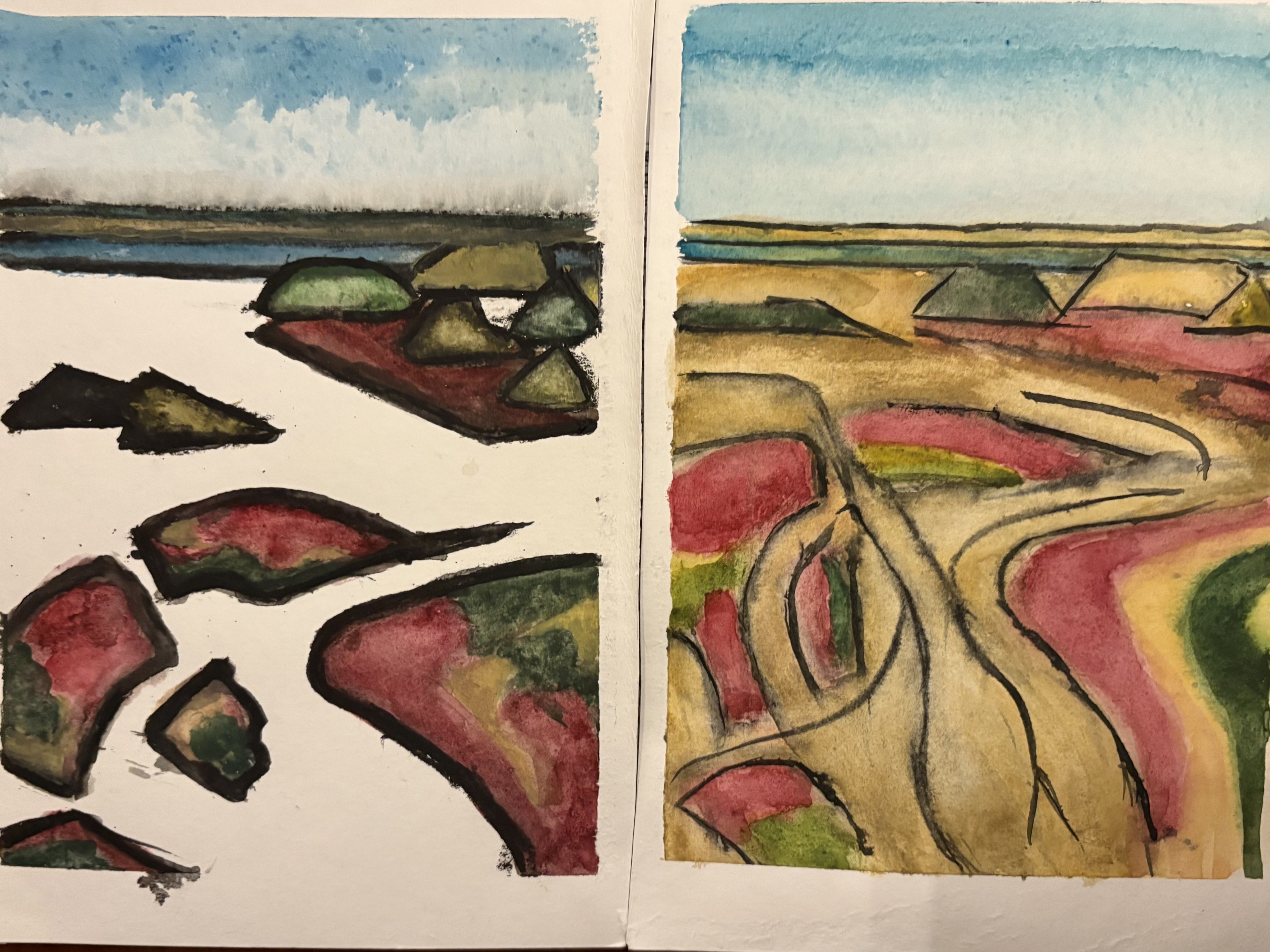 De landschap lijnen tot eenvoud terug gebracht . Geschilderd vanuit hoge duinpan positie .