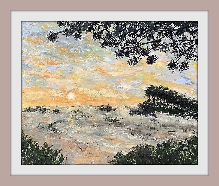 In de Veluwse natuur maakt Paul Milo al jaren op allerlei momenten van de dag prachtige foto's van het landschap en van wild. Foto's die niet alleen bewonderenswaardig zijn, maar ook inspirerend. Zo vormde een enkele jaren geleden door Paul gemaakte foto impressie van het Kootwijkerzand de inspiratie voor een kleine geschilderde, vredige impressie gecreëerd met o.a. twee soorten pastelkrijt.