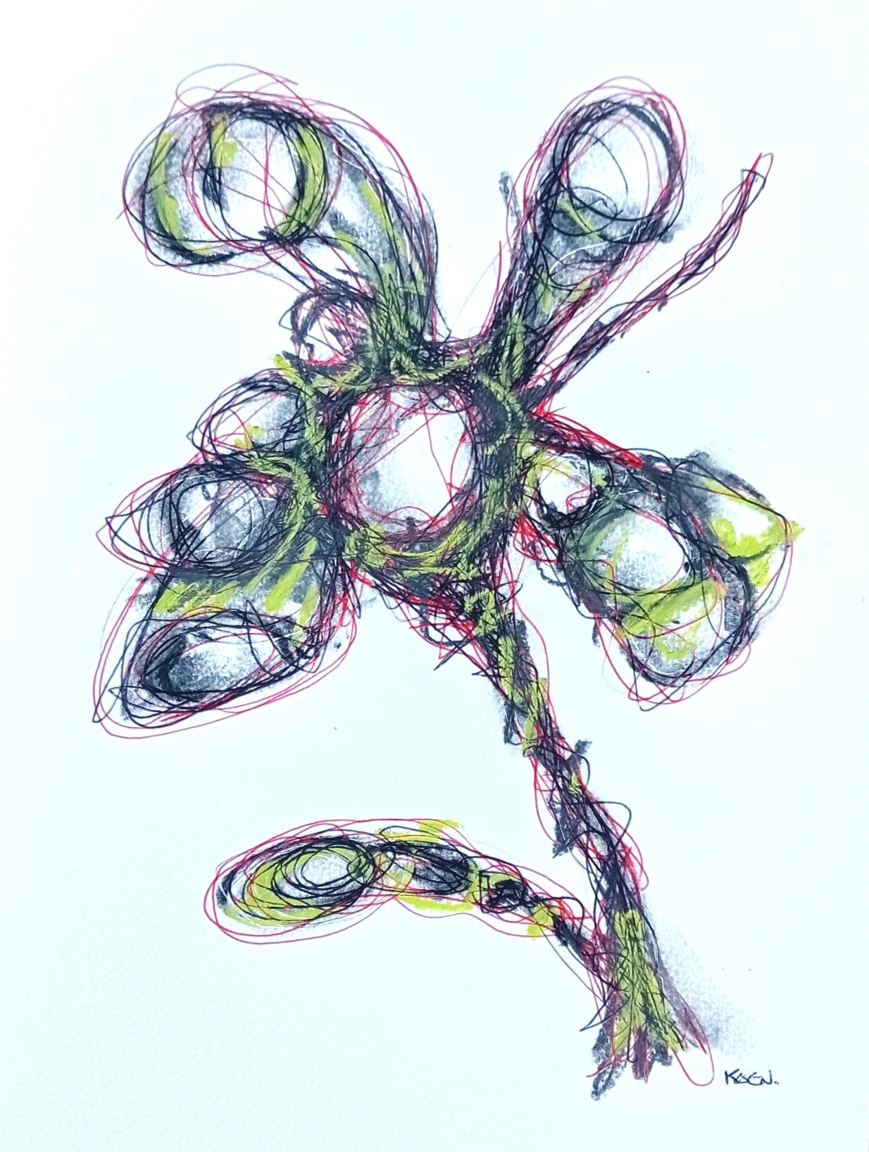 Fineliner, houtskool en pastelkrijt