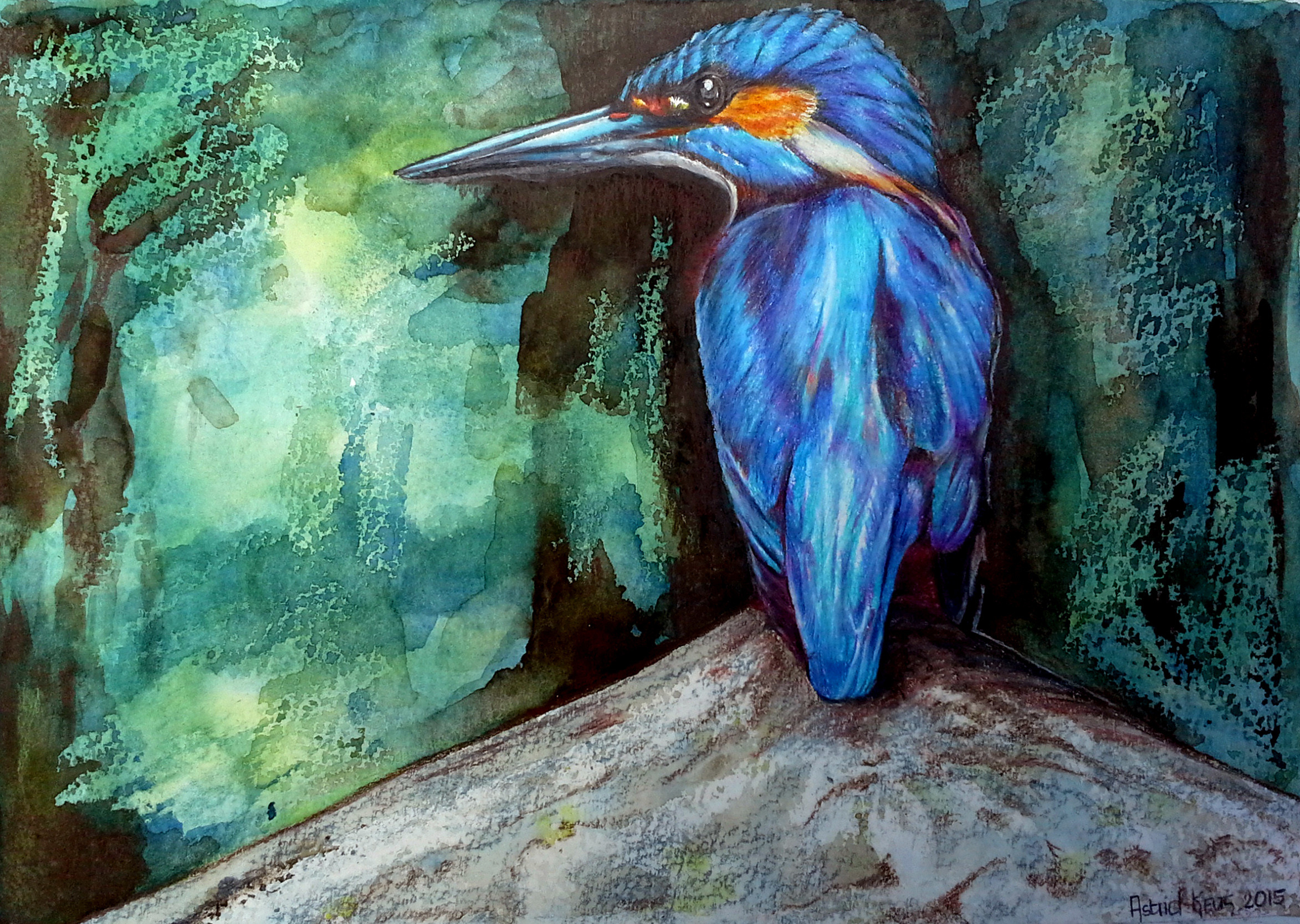 Een vriend had een mooie foto van de Kingfisher genomen. Ik mocht hem op creatieve manier weergeven.