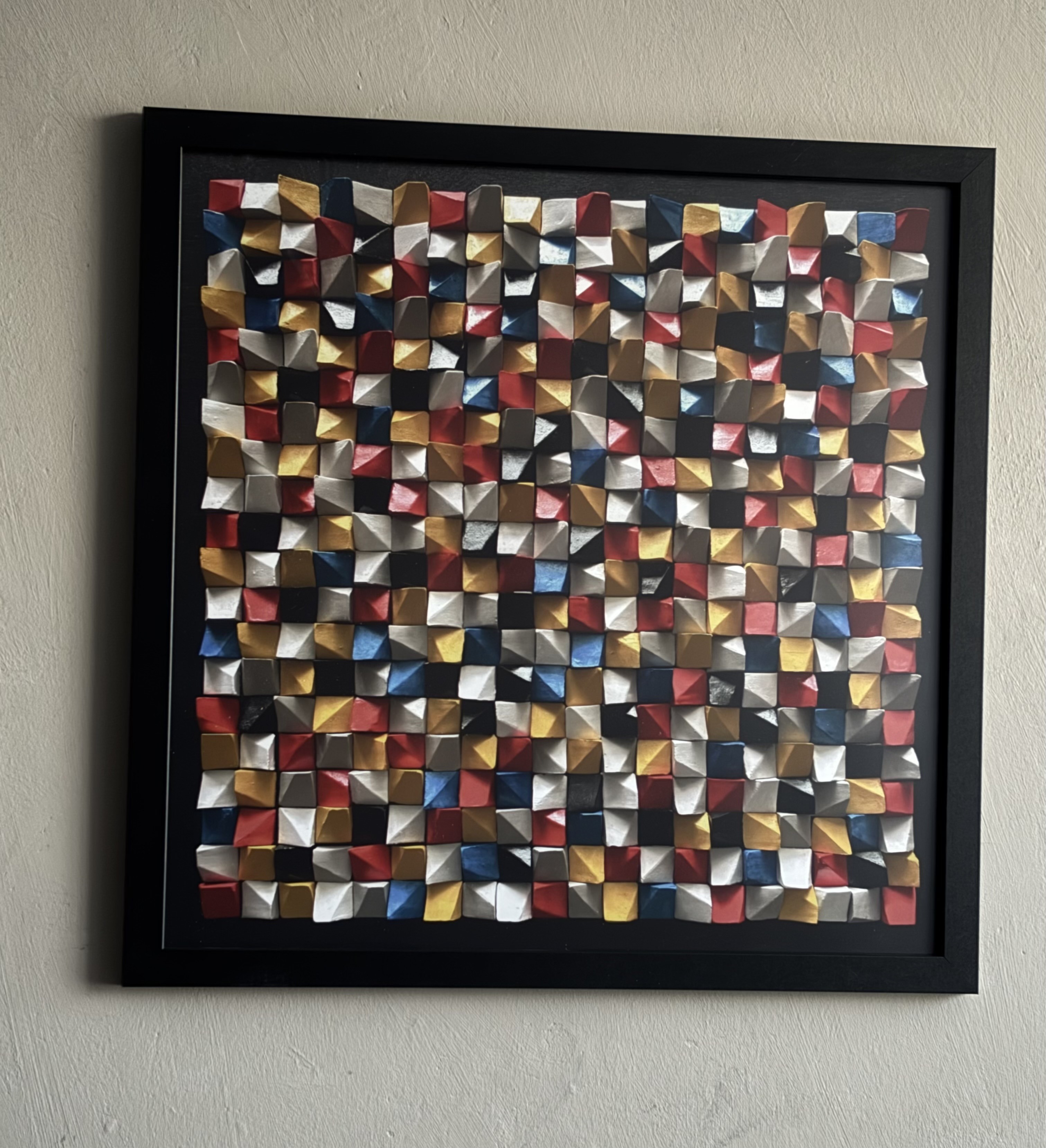 Afdruk (van kunstwerk "Kleurrijk" keramiek) in mat zwarte Mdf houten lijst. 30x30cm | prijs €75 40x40cm | prijs €89 50x50cm | prijs €99