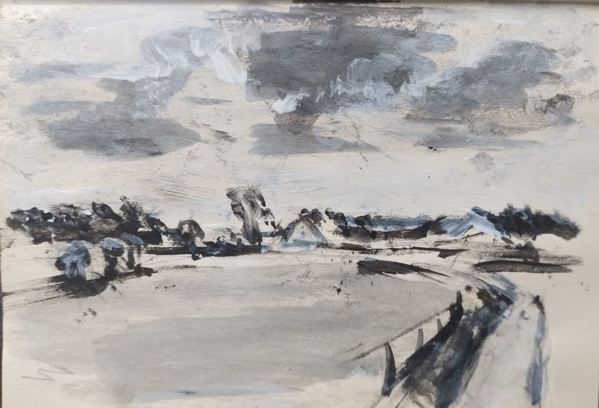 Landschap in potlood en acryl