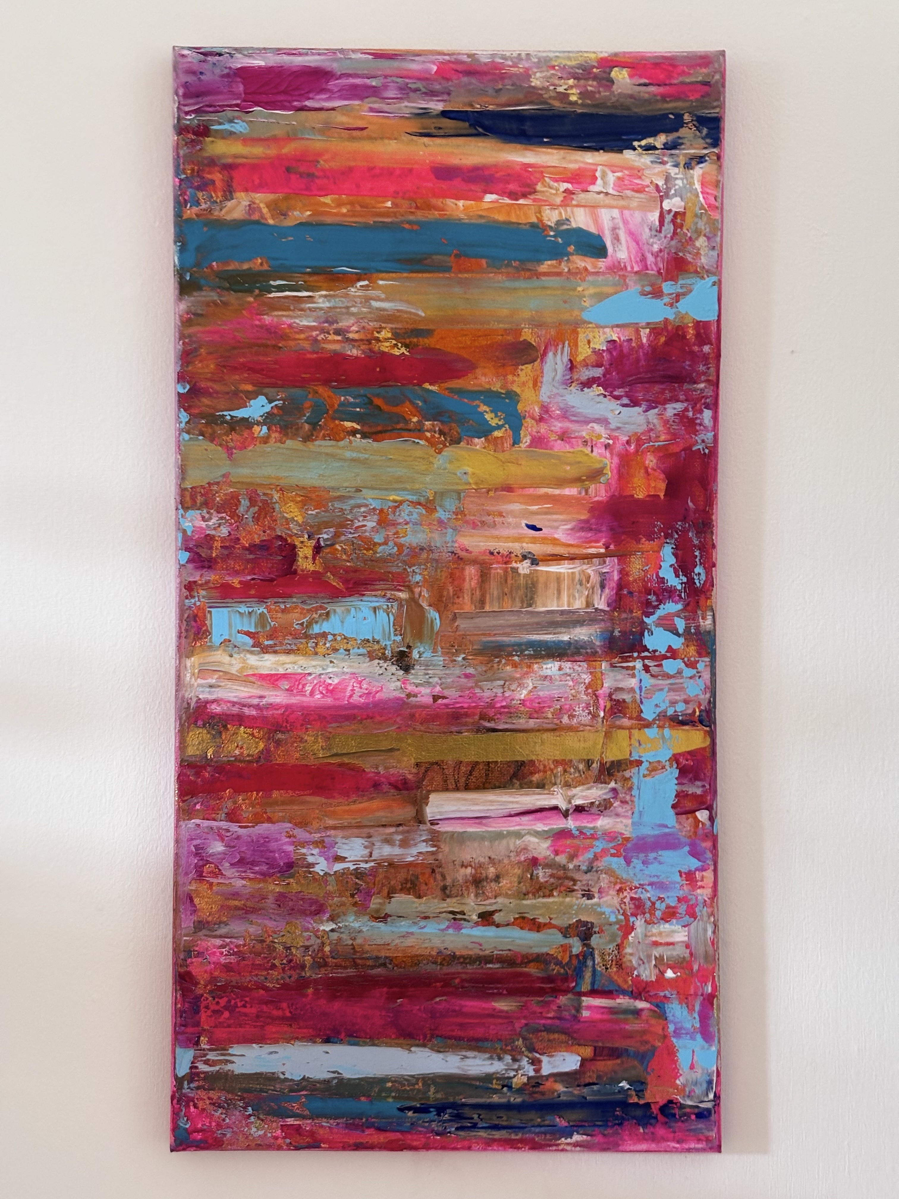 This painting I love the collars and the combination and with the gold. You can hang this verticaal or horizontaal I signed on the Side so you choose it’s acryl mixed with oil and gold leaves underneed