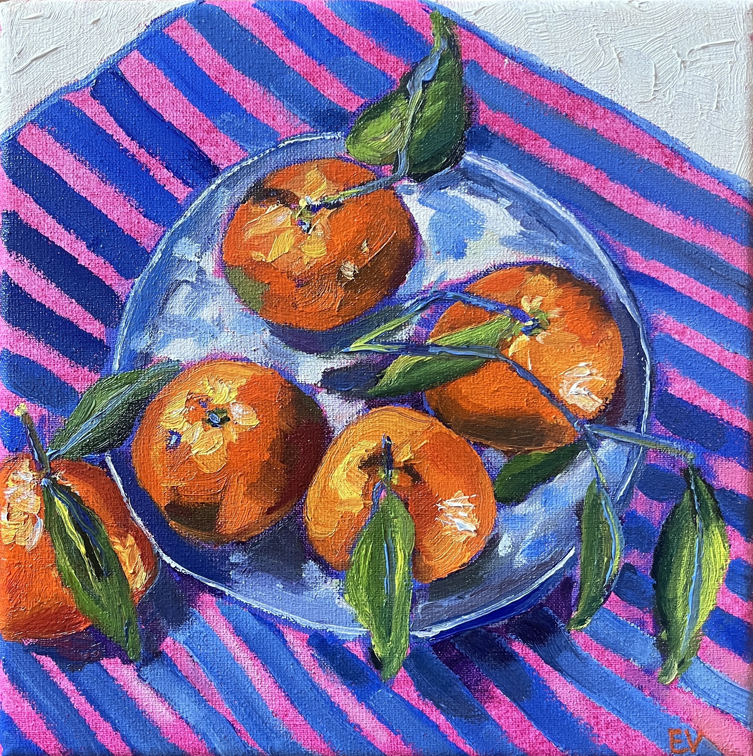 Eerste werk van 2026. Naar eigen compositie. Ook al is het winter, deze prachtige mandarijnen waren te koop op de markt en zagen er niet alleen prachtig uit maar smaakten ook nog eens erg lekker. Het tafelkleed zou oorspronkelijk niet roze worden maar ik heb toch de onderlaag een rol gegeven. Alles wordt beter met een vleugje roze!