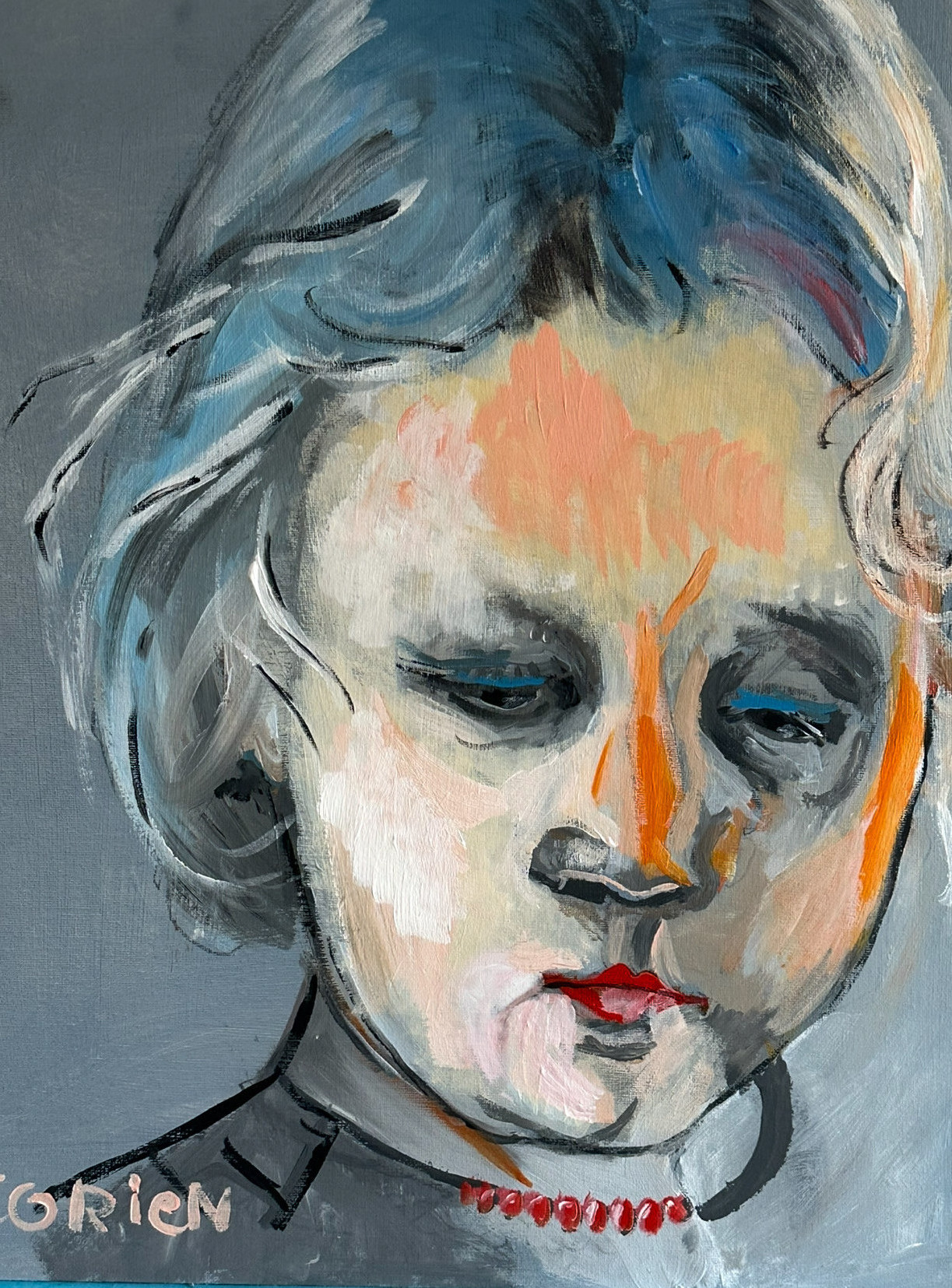 Ook het zusje van Dara abstracter weergegeven. Geconcentreerd bezig met een knutsel werkje.