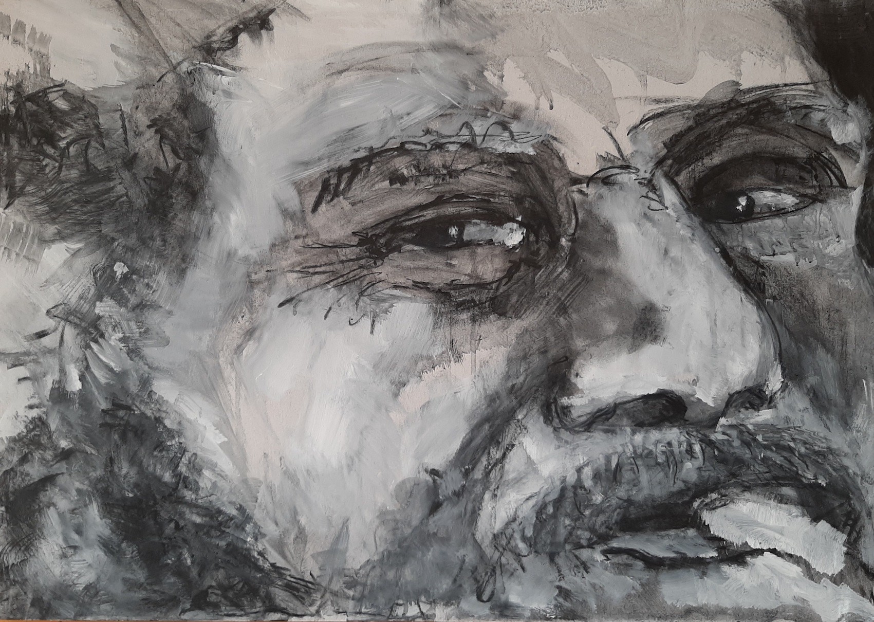 Houtskool met witte latexverf.