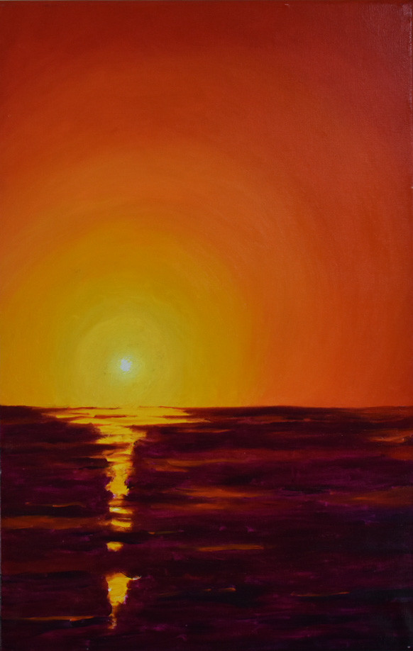 Zeelandschap in rode tinten Olieverf op doek