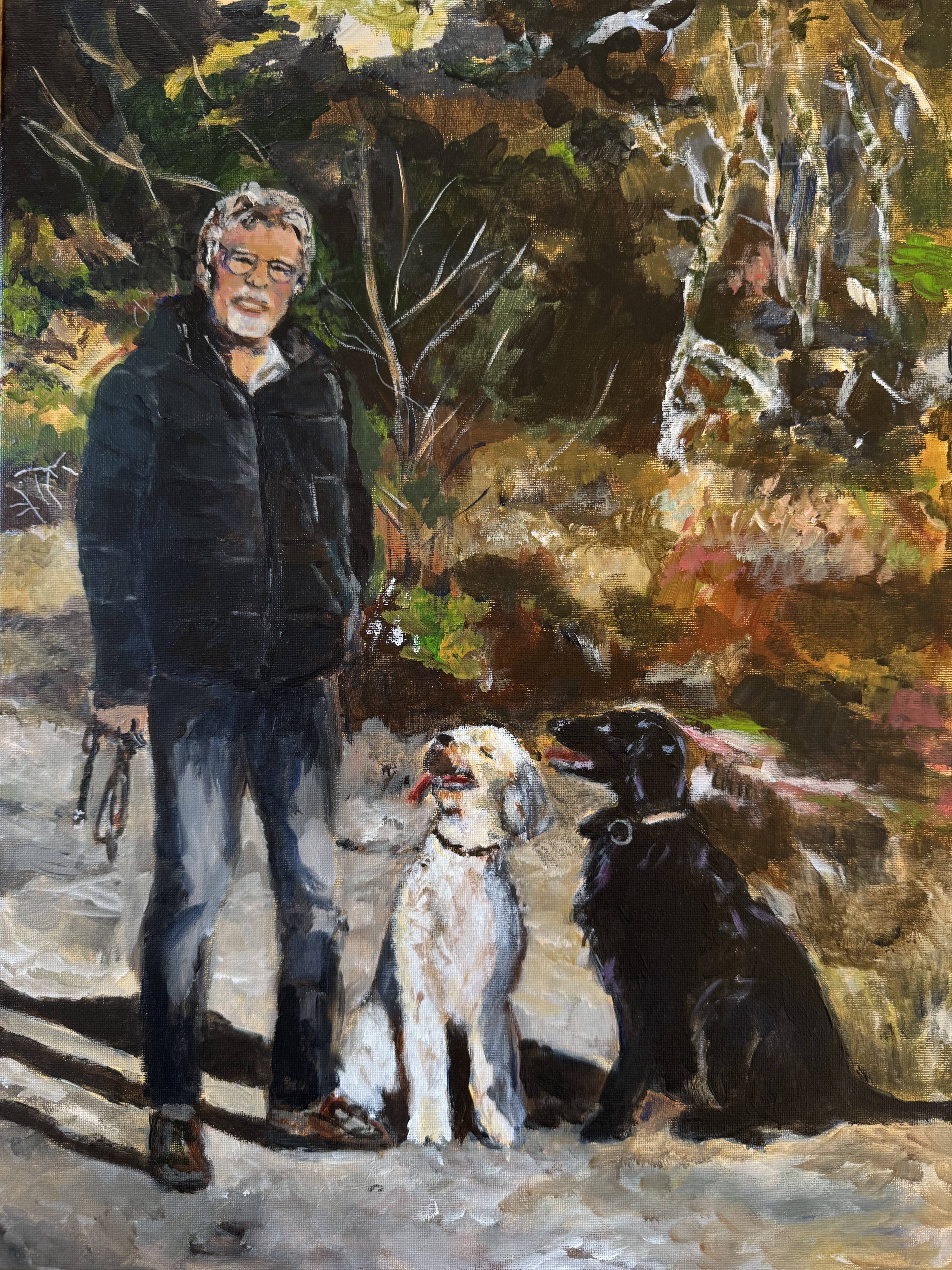 Rene met onze leerling Fenna en Jelka onze Flatcoated ! wat een schatten!