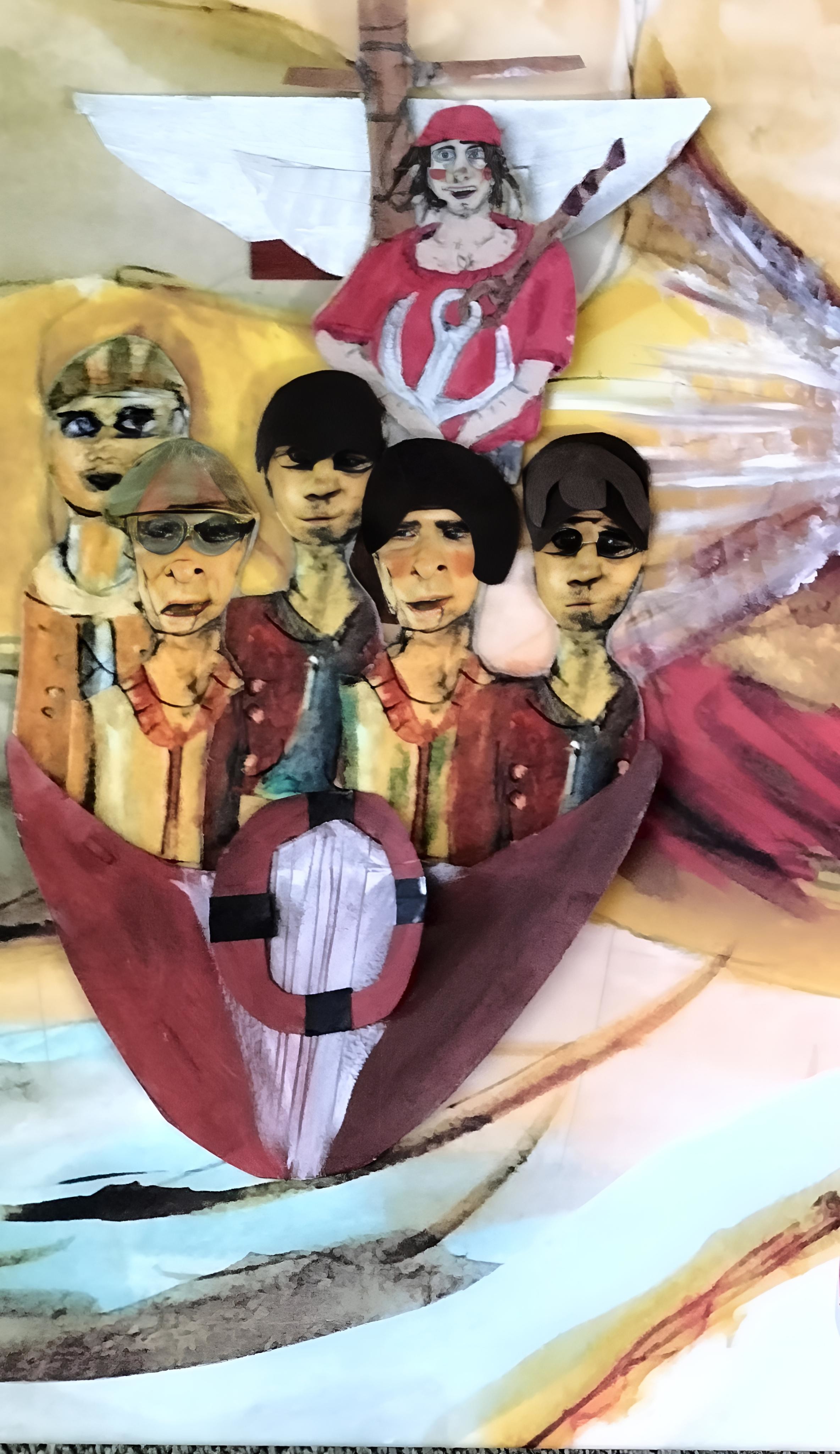 Verschillende figuren van karton samen gevoegd en gefotografeerd. Gemaakt van karton en papier gefotografeerd geknipt geplakt