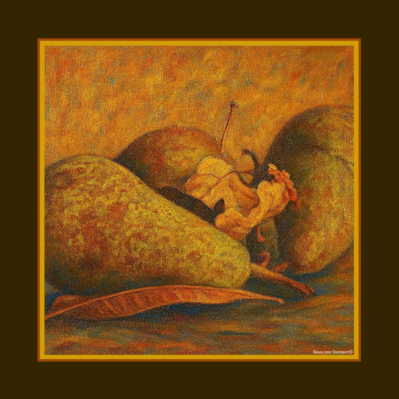 Zij staan niet alleen, maar samen-in het licht dat niet schijnt, maar gloeit. Hun huid draagt vlekken van tijd, hun vorm een echo van groei. Tussen blad en vrucht ligt stilte, en in die stilte het seizoen.