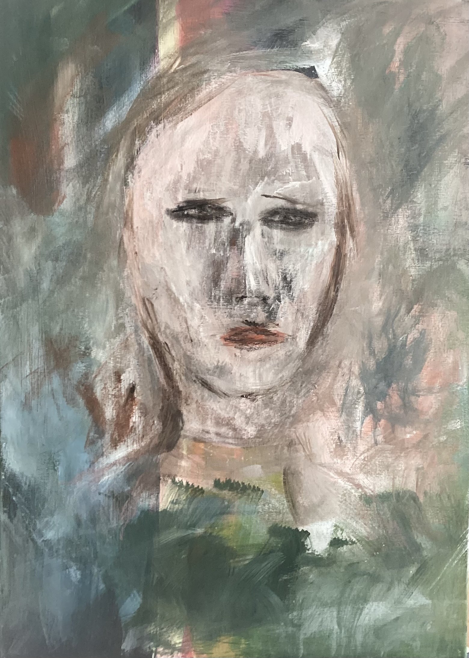 Onlangs deed ik een workshop intuïtieve portretten schilderen bij Richelle Brink. Totaal uit mijn comfortzone. Maar dat geeft niet want daar leer je heel veel van. Vandaag had ik verf over en ik besloot een oud doek over te schilderen met een portret. Is het goed, is het slecht? Het maakt niet uit, want het gaat om het proces. Niet teveel nadenken, maar dóen. Lekker los schilderen, met veel plezier. Daarom laat ik het hier zien.
