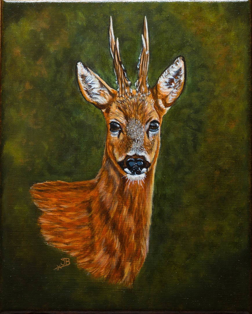 Portret van de Reebok uit het Haagsebos Zuid-Holland is klaar. Canvas Linnen doek afmeting 24cm x 30cm olieverf met tijdelijk uithaalvernis ter bescherming en de kleuren op te halen.