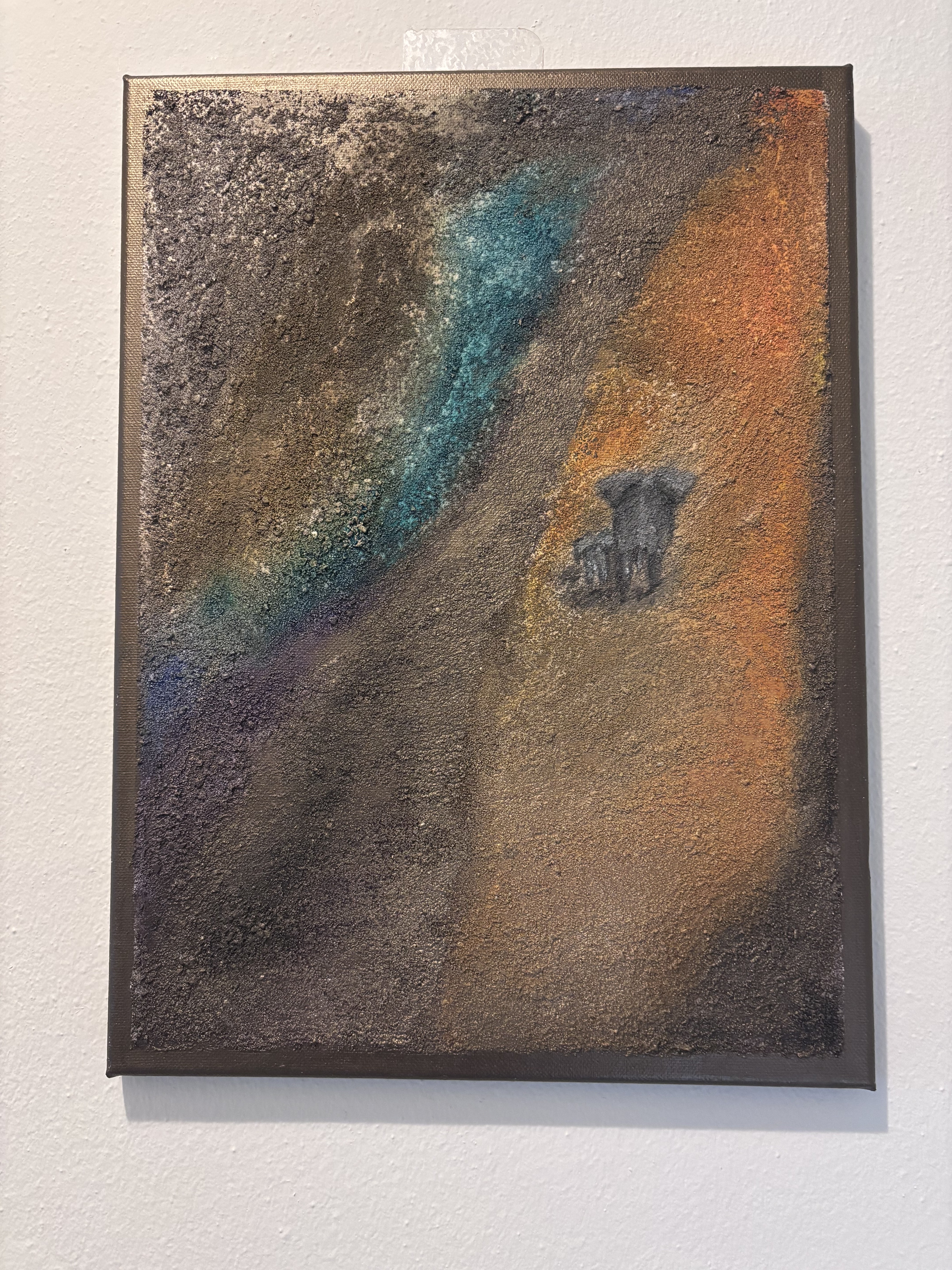 Geïnspireerd door de savanne en een experiment uit mijn comfortzone is dit schilderij ontstaan begonnen met zand en acryl verf en met inkt de bijzondere kleuren toegevoegd