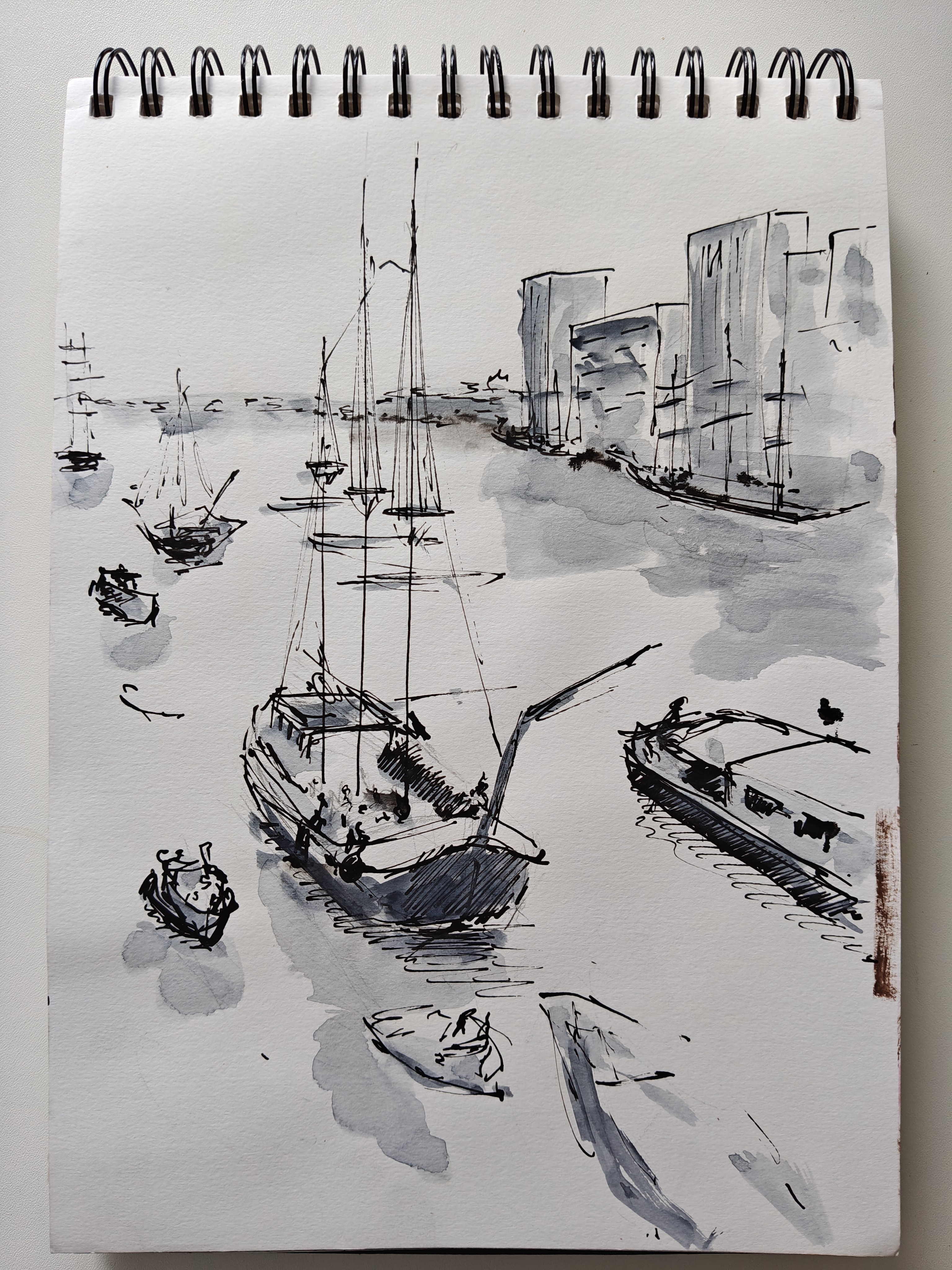 Inkt en aquarel, schetsboektekening
