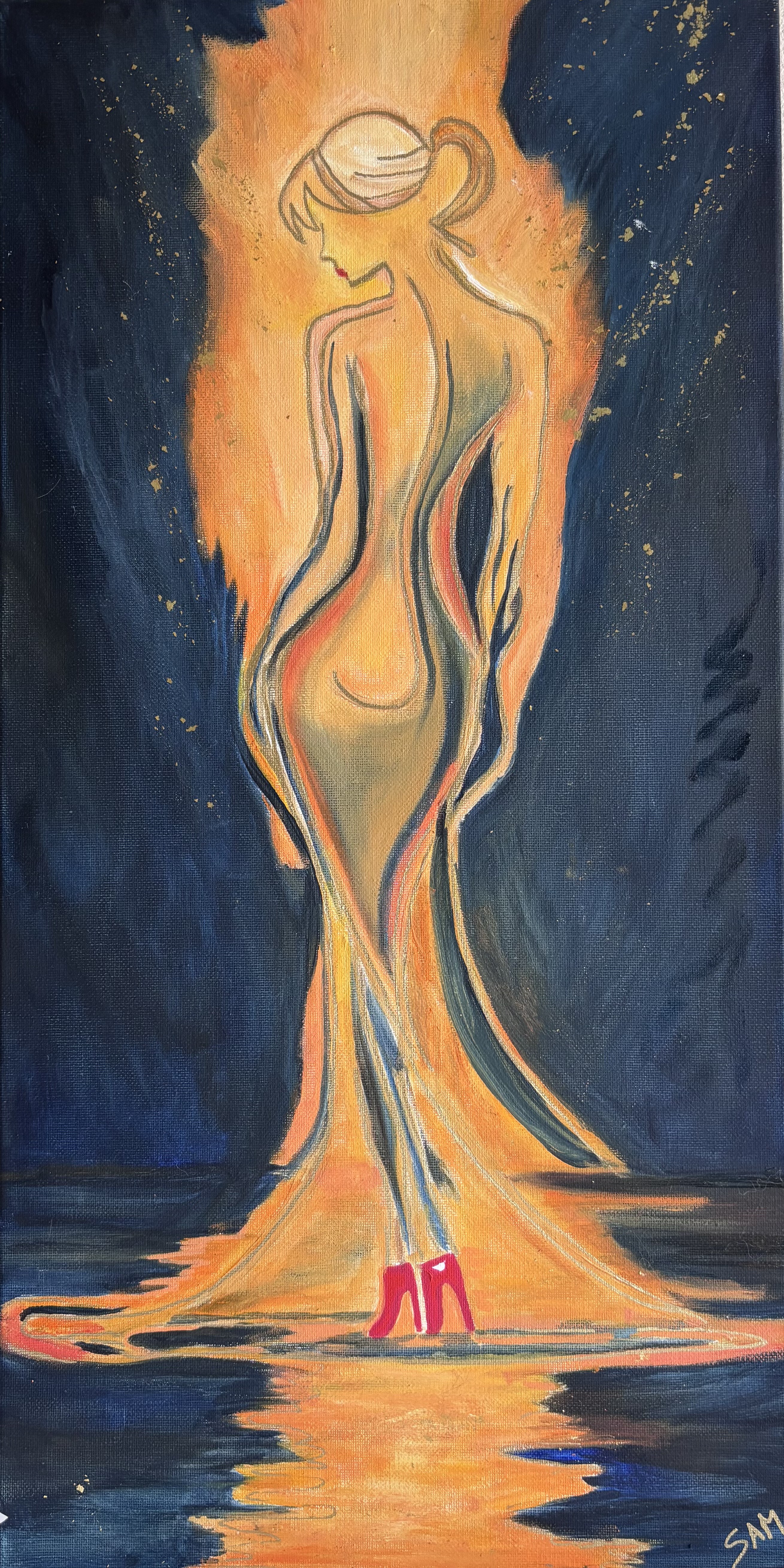 You shine is one off the first with gold she is present but not yet confident her red high heels are a nice detail she walk the catwalk for the first time so always a bit scary. She shine.