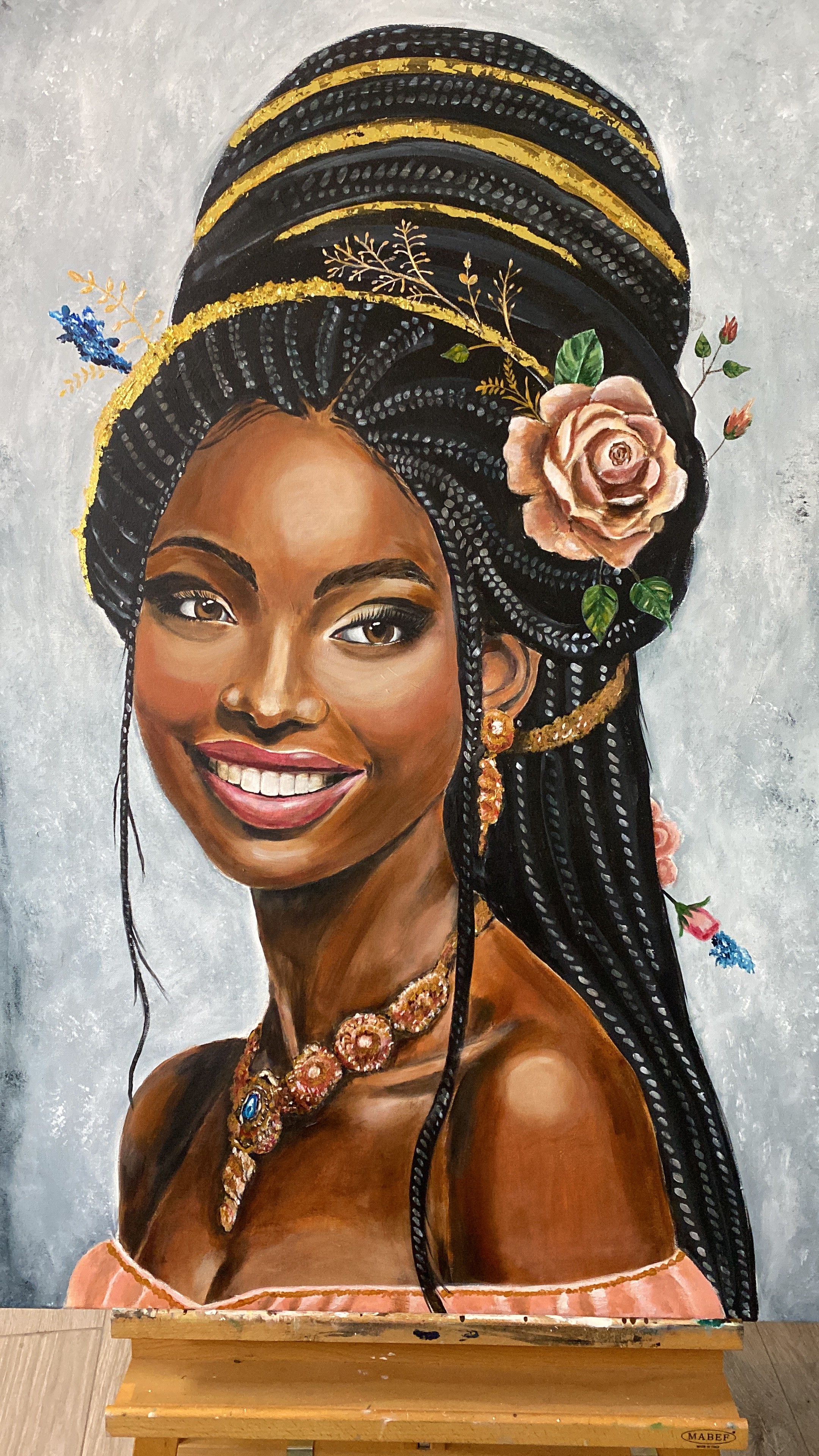 Vrouw met gevlochten haar en er is met bladgoud gewerkt