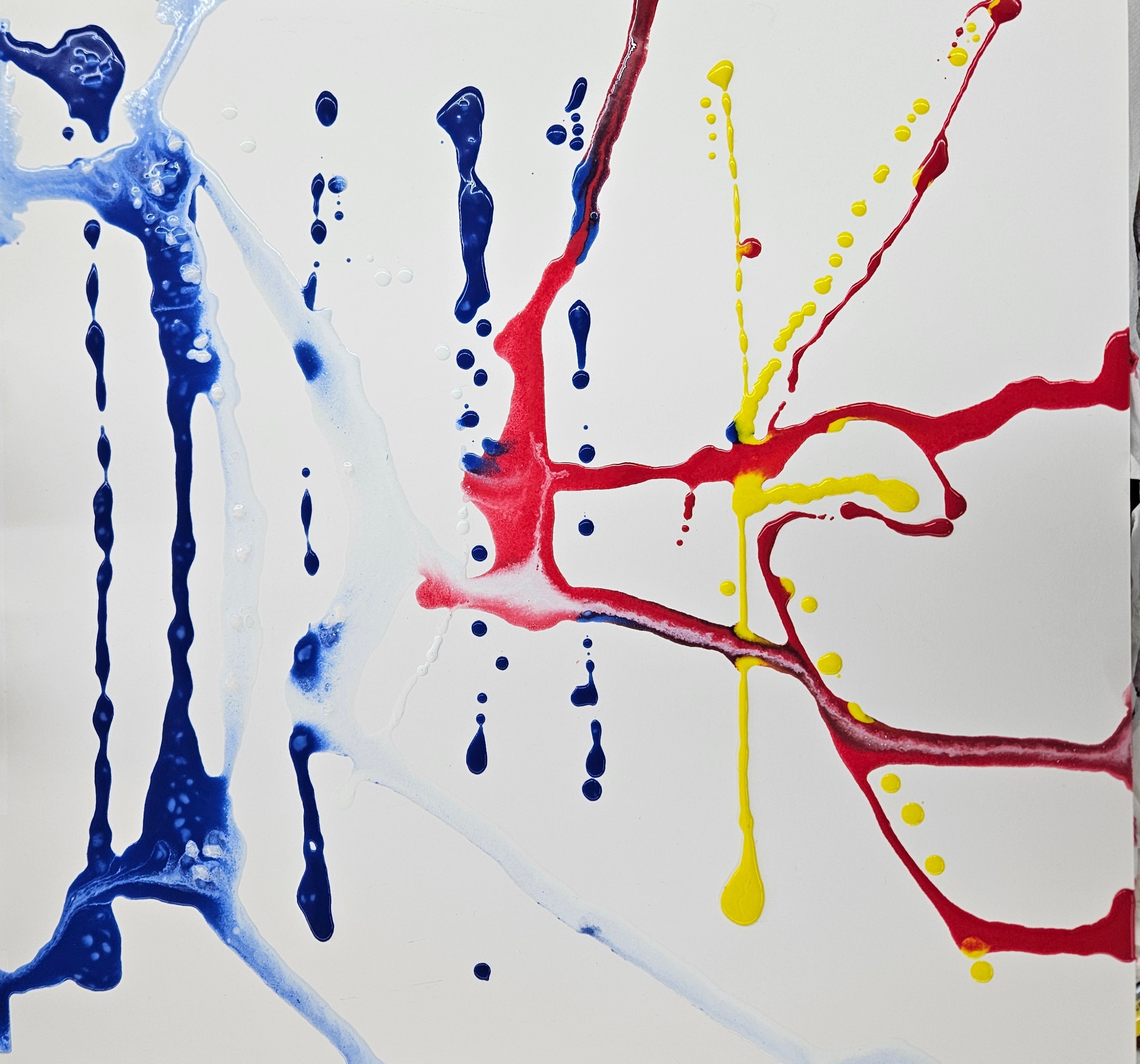 Gemaakt met acryl in behanglijm en met inkt. Gestopt om dat het genoeg naar mij spreekt en dat anderen aangaven niets meer te doen.