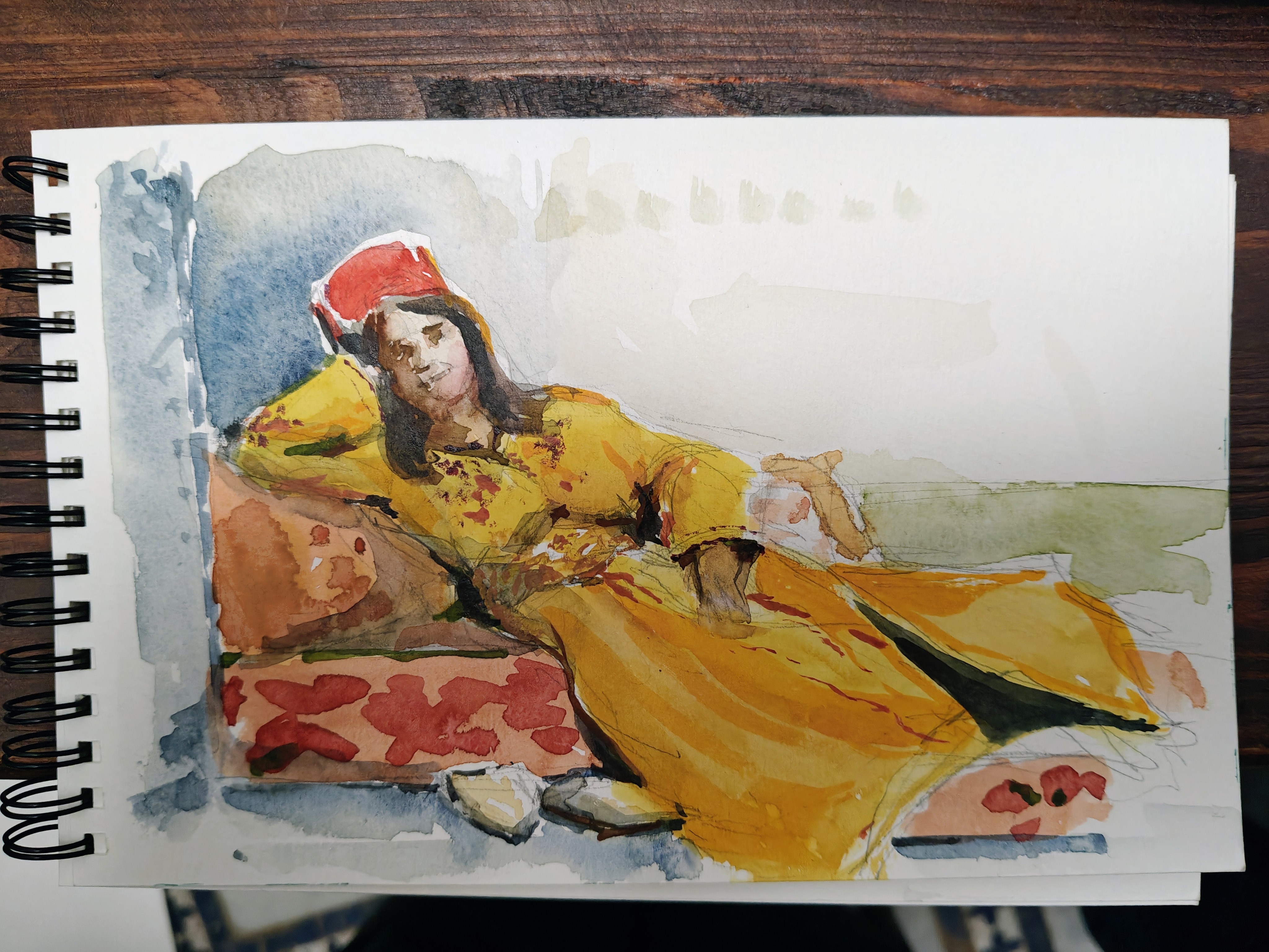 Portret van de stoere storyteller, die ons wat inkijkjes gaf in de Marokkaanse cultuur met haar verhalen. Na afloop heeft zij voor onze groep geposeerd als model.