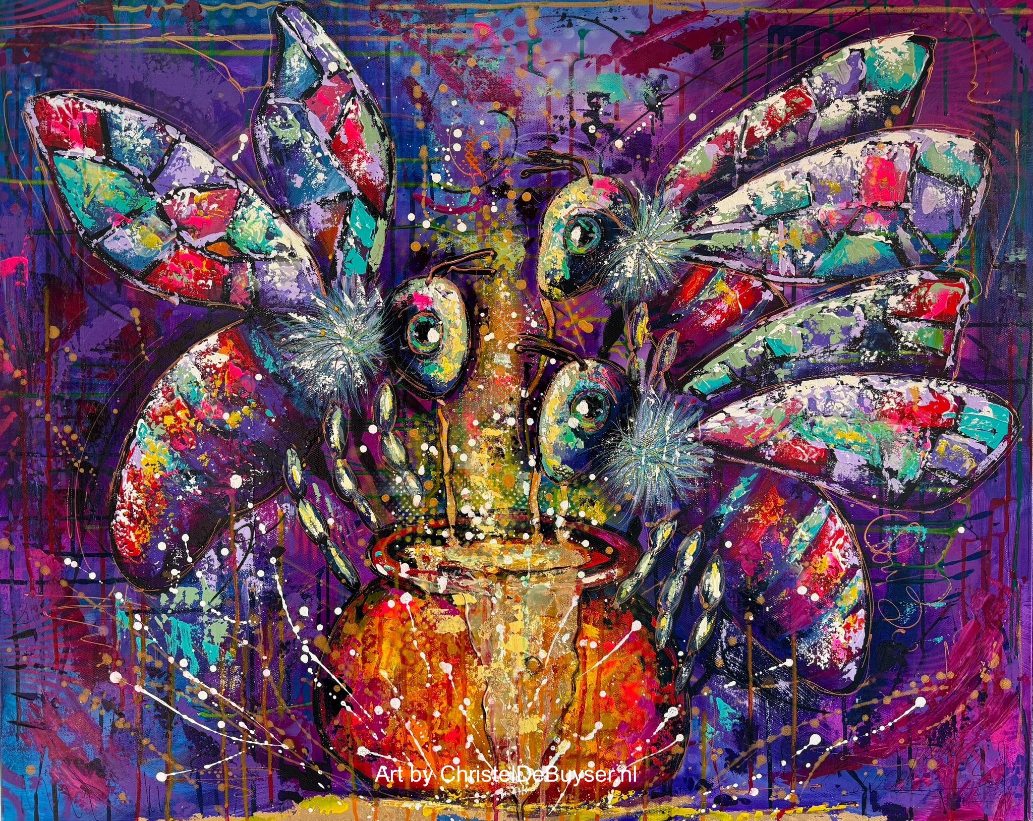 Sweet Delight laat zien hoe welvaart groeit uit samenwerking en zorg voor elkaar. Honing staat voor overvloed, voeding en toekomst. Zonder bijen geen leven: zij verbinden natuur, mens en economie in een kwetsbaar maar krachtig evenwicht. Met glow in the dark en bladgoud. Dit kunstwerk is door kunstenares Christel De Buyser speciaal ontworpen en gemaakt voor expo met thema Welvaart.