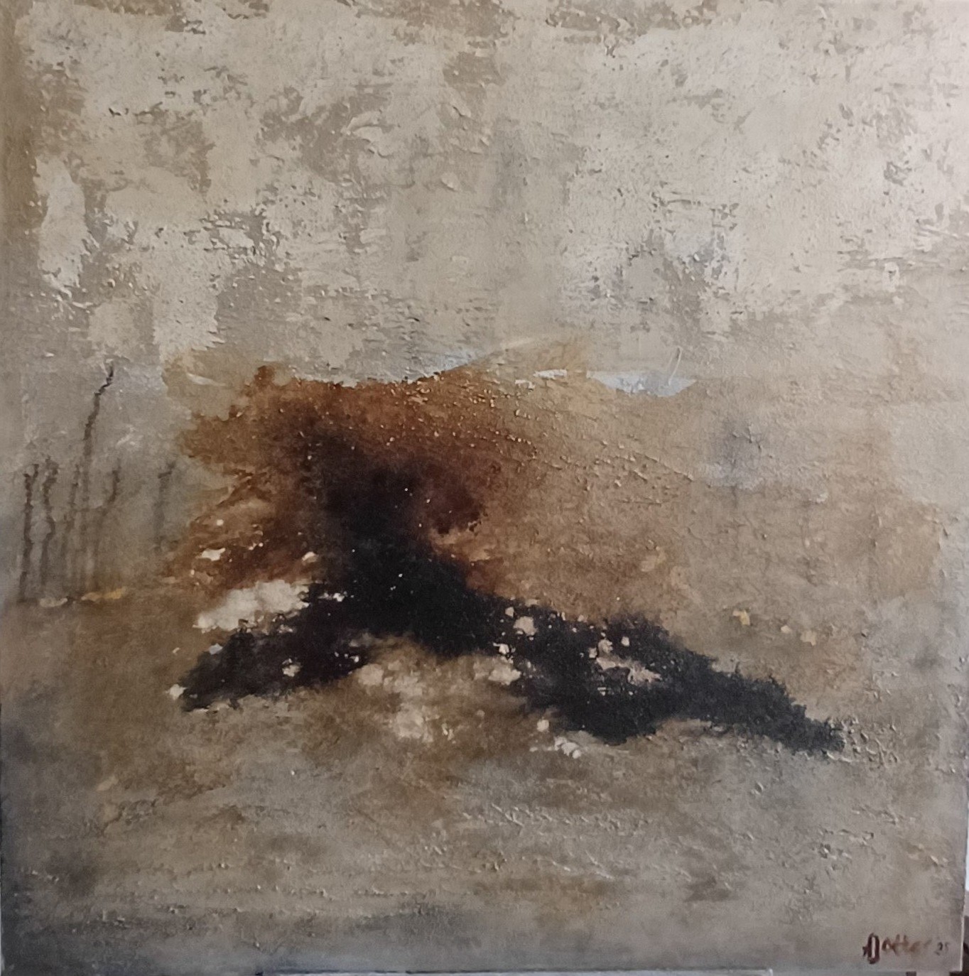 Een schilderij dat vele lagen en gedaanten heeft gehad en uiteindelijk mijn fantasie prikkelde. Ik zag er de titel in, maar elke interpretatie is goed. Wat zie jij?
