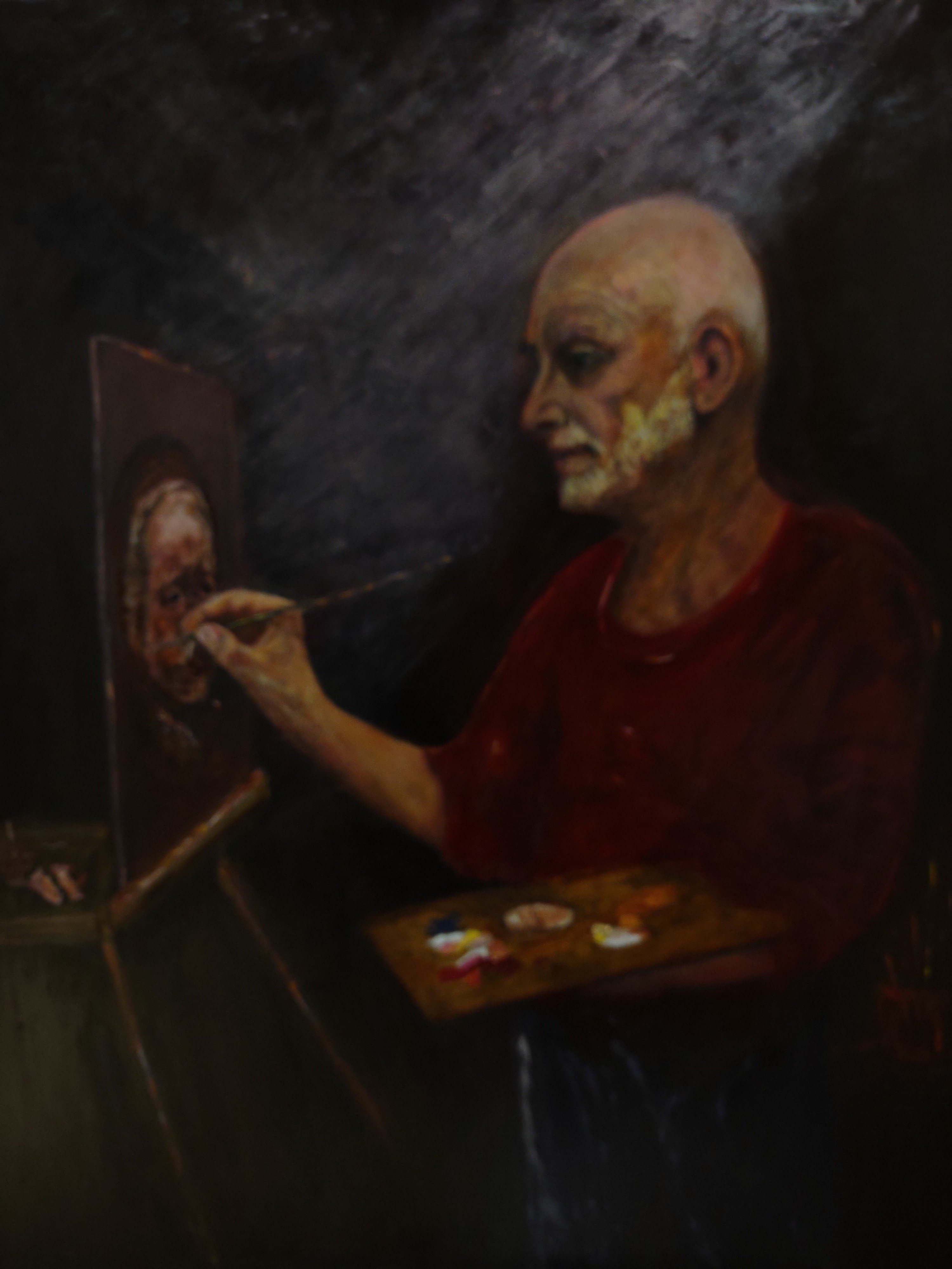 Dit schilderij van mij en door mij is vele malen veranderd. Maar uiteindelijk ben ik tevreden over het resultaat. Het schilderen van Rembrandt in perspectief was n leerzame uitdaging.