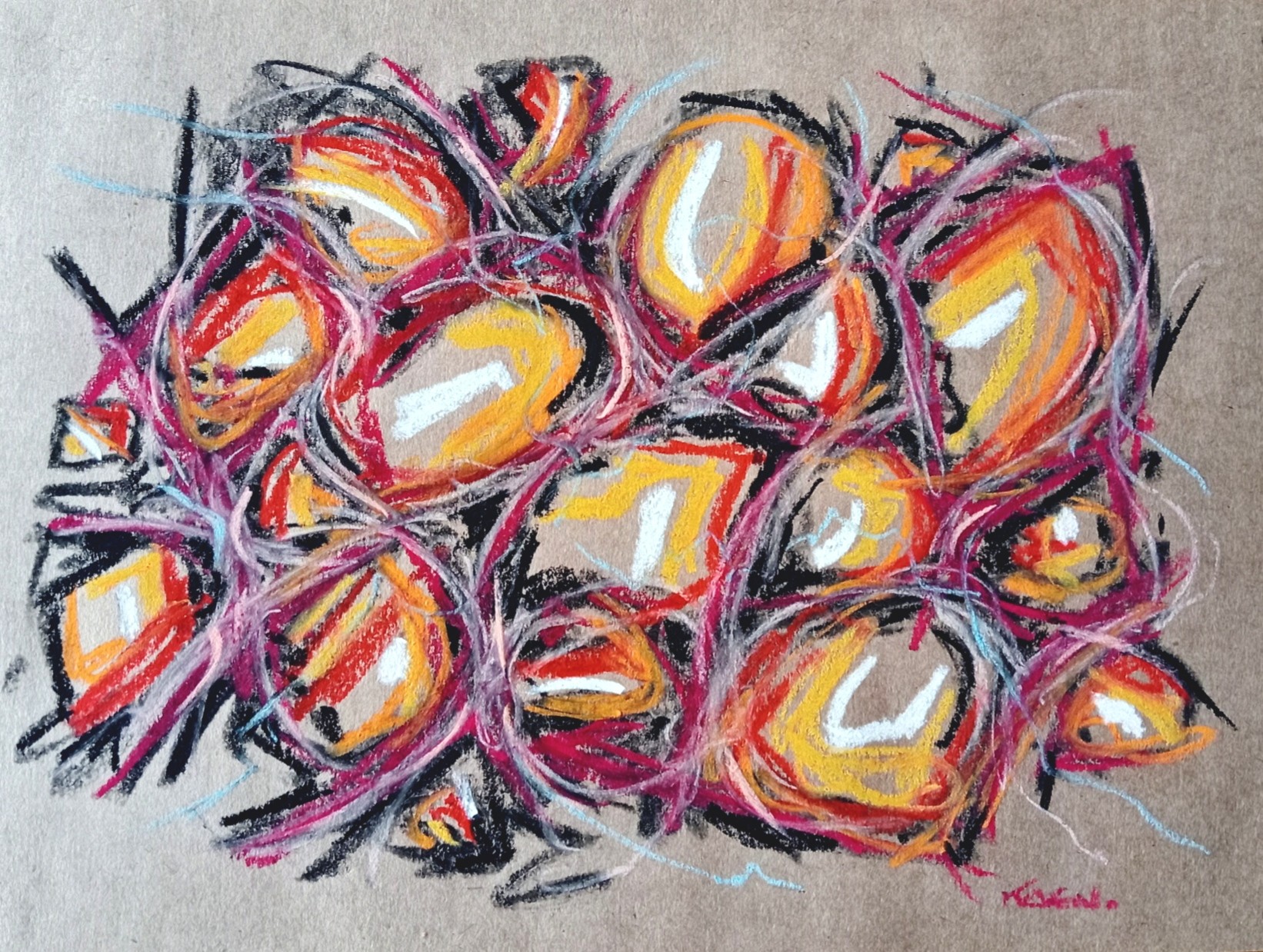 Uitdrukking van een stammengemeenschap, pastel op hergebruikt karton