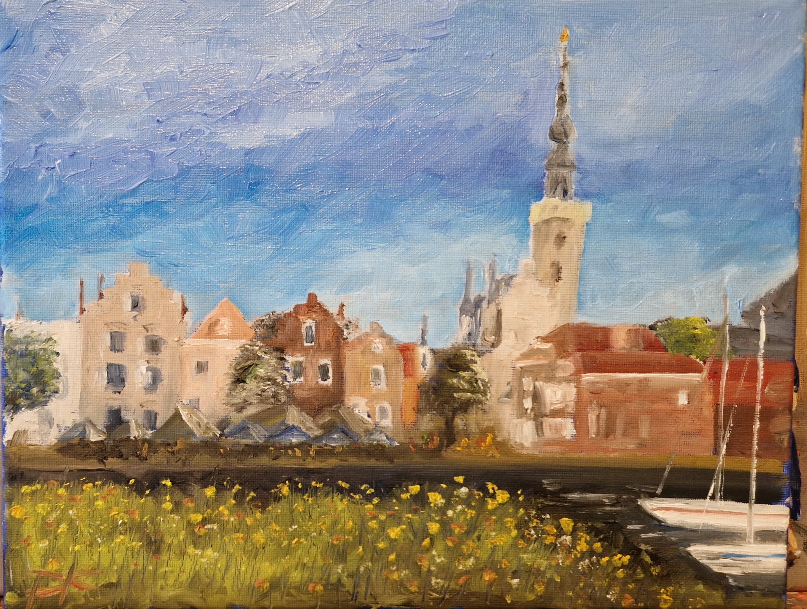 zelfs op een druilerige dag is Veere inspirerend om te schilderen! (alla prima)