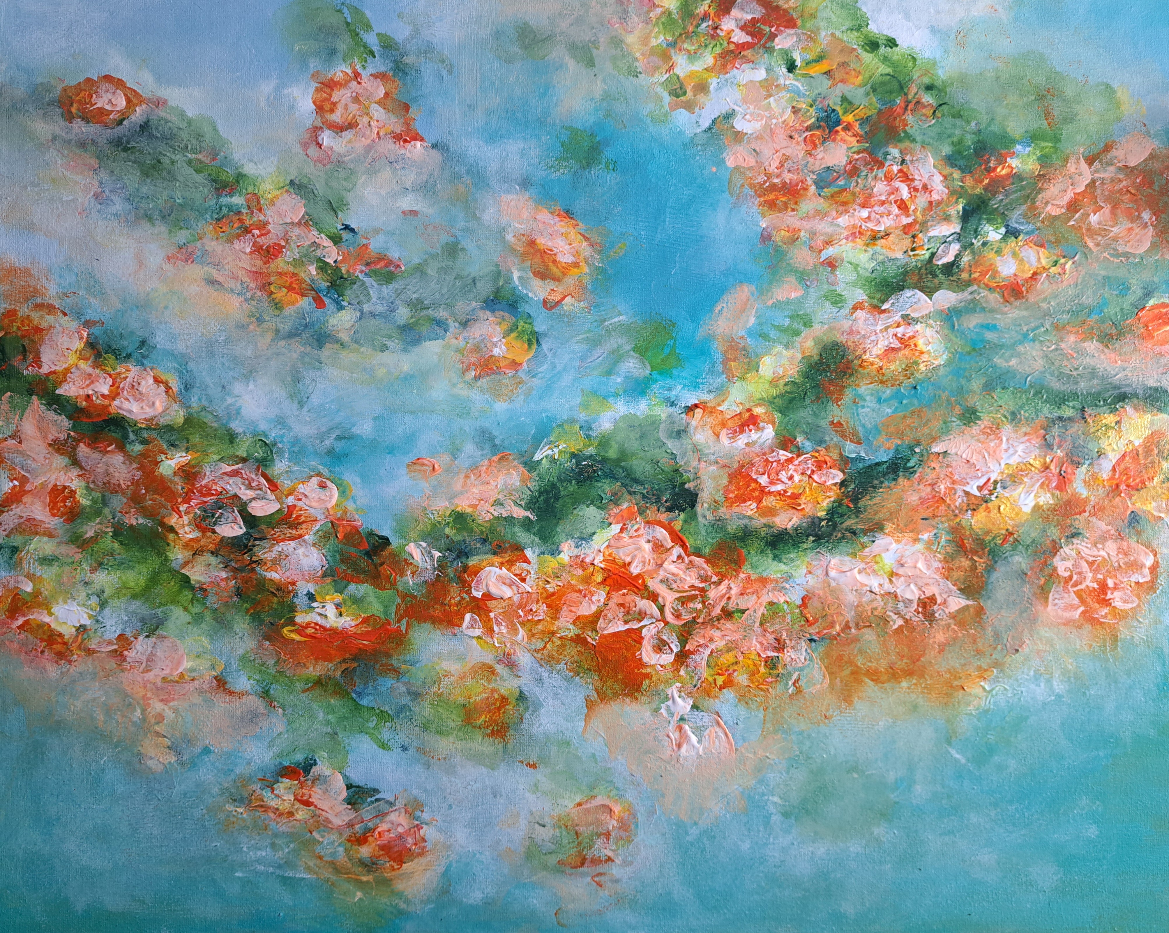 Op deze druildag een inspirerend schilderij gemaak van abstracte bloeisels.