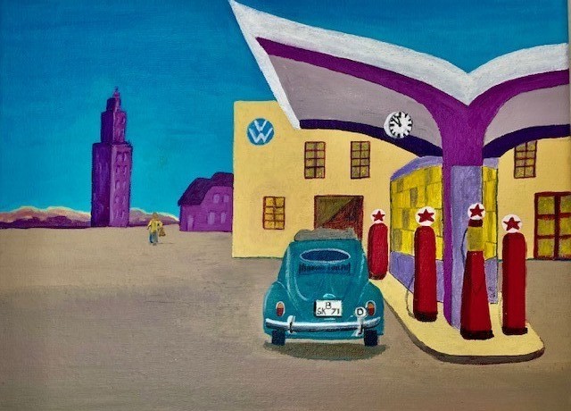 Caltex benzinestation van PON's Automobielbedrijf in Amersfoort met een oude VW Kever