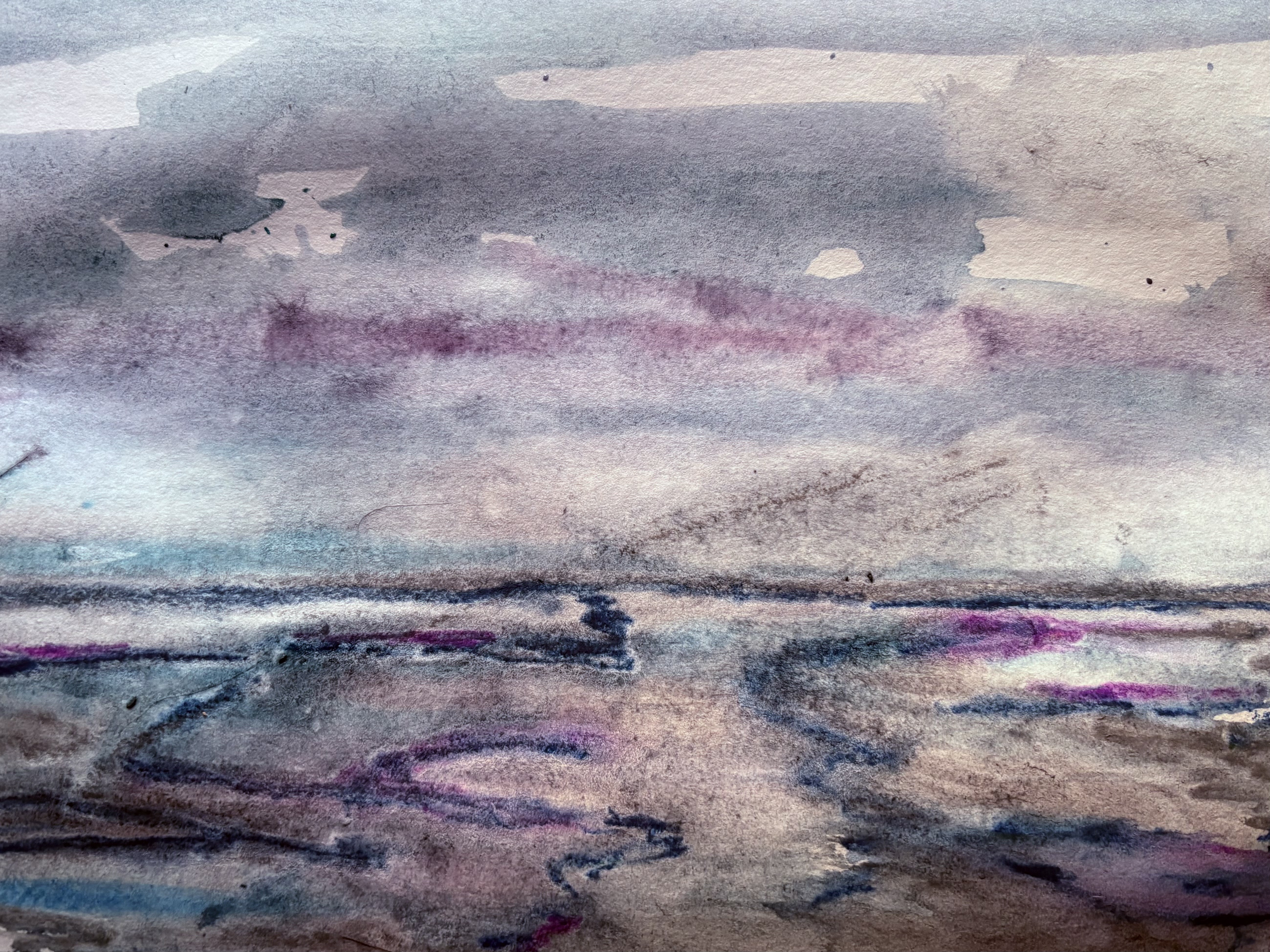 Net iets later geschilderd vanuit zelfde haven steiger positie als vorig werkstuk . Droogvallen wad tegen avond schemering