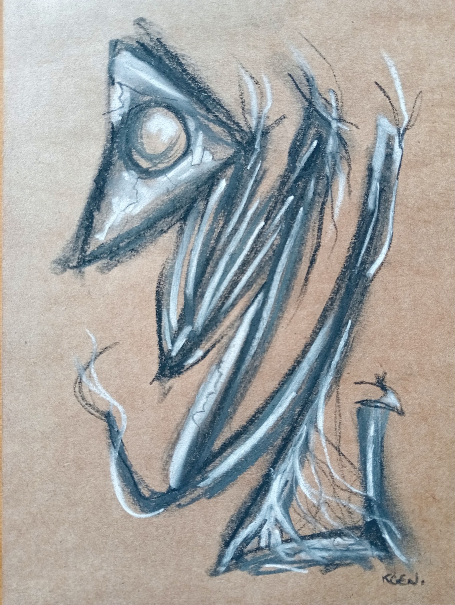 Houtskool en schoolbordkrijt op hergebruikt karton