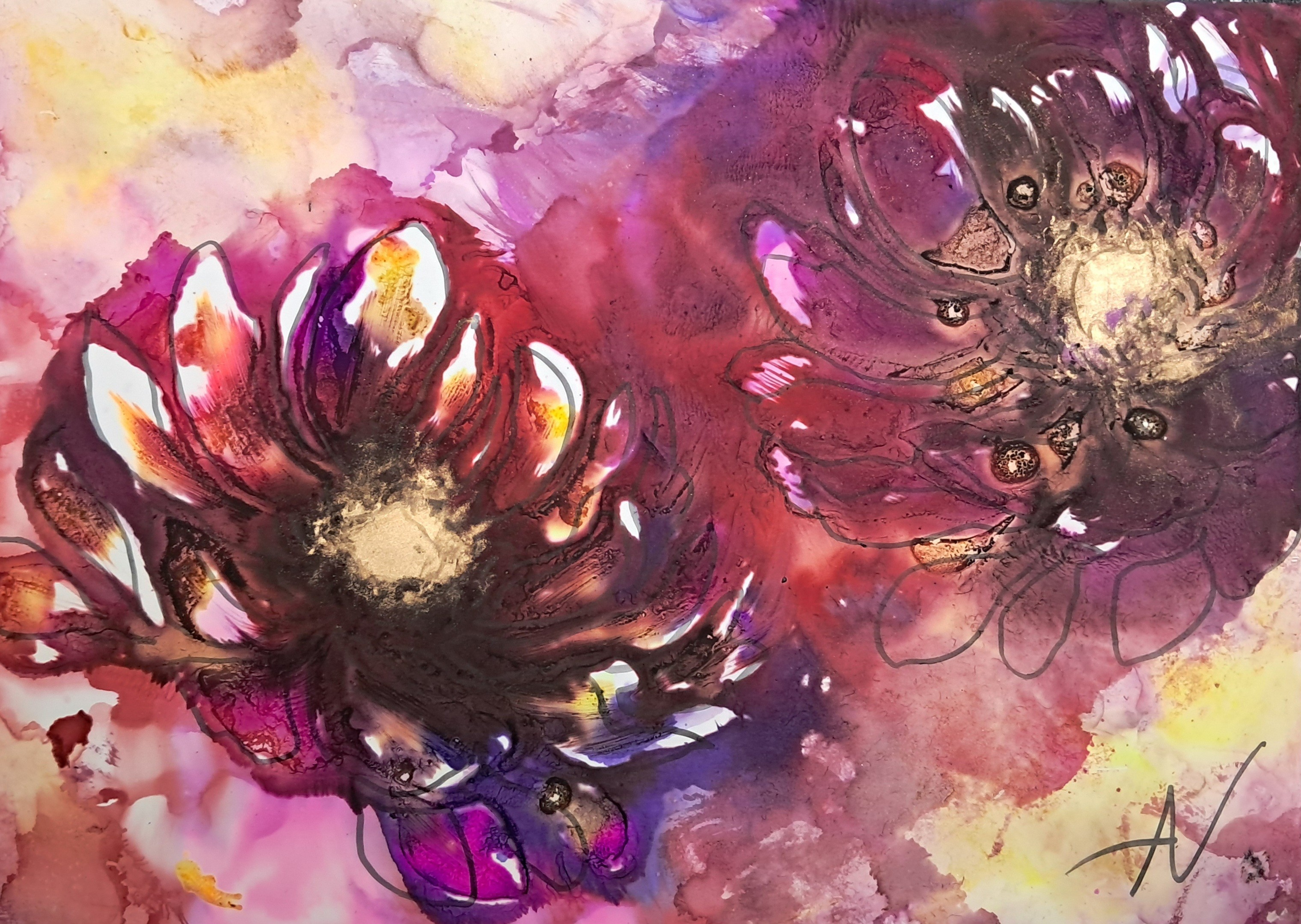 Alcohol inkt op yupo papier. Een techniek waar je weinig vat op hebt.